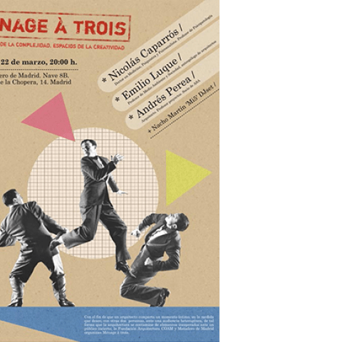 Con el fin de que un arquitecto comparta un momento íntimo, en la medida que desee, con otras dos personas, ante una audiencia heterogénea, de tal forma que la arquitectura se contamine de elementos inesperados ante un público incierto, la Fundación Arquitectura COAM y Matadero de Madrid organizan Ménage à trois: PARADOJAS DE LA COMPLEJIDAD, ESPACIOS DE LA CREATIVIDAD.