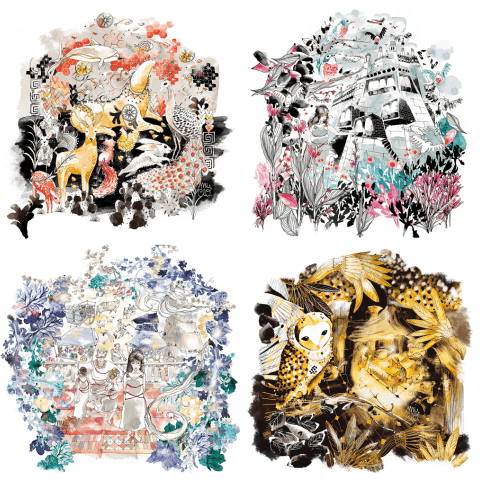 Mi Clo cuenta ya con cuatro series de estampados: Piedramuelle, Ilustrísimas, La Sombrerería y Psicópteros y Algos, ésta última inspirada en el mito griego de Psique y Eros, donde la historia gira en torno al encuentro del amor con el alma humana.