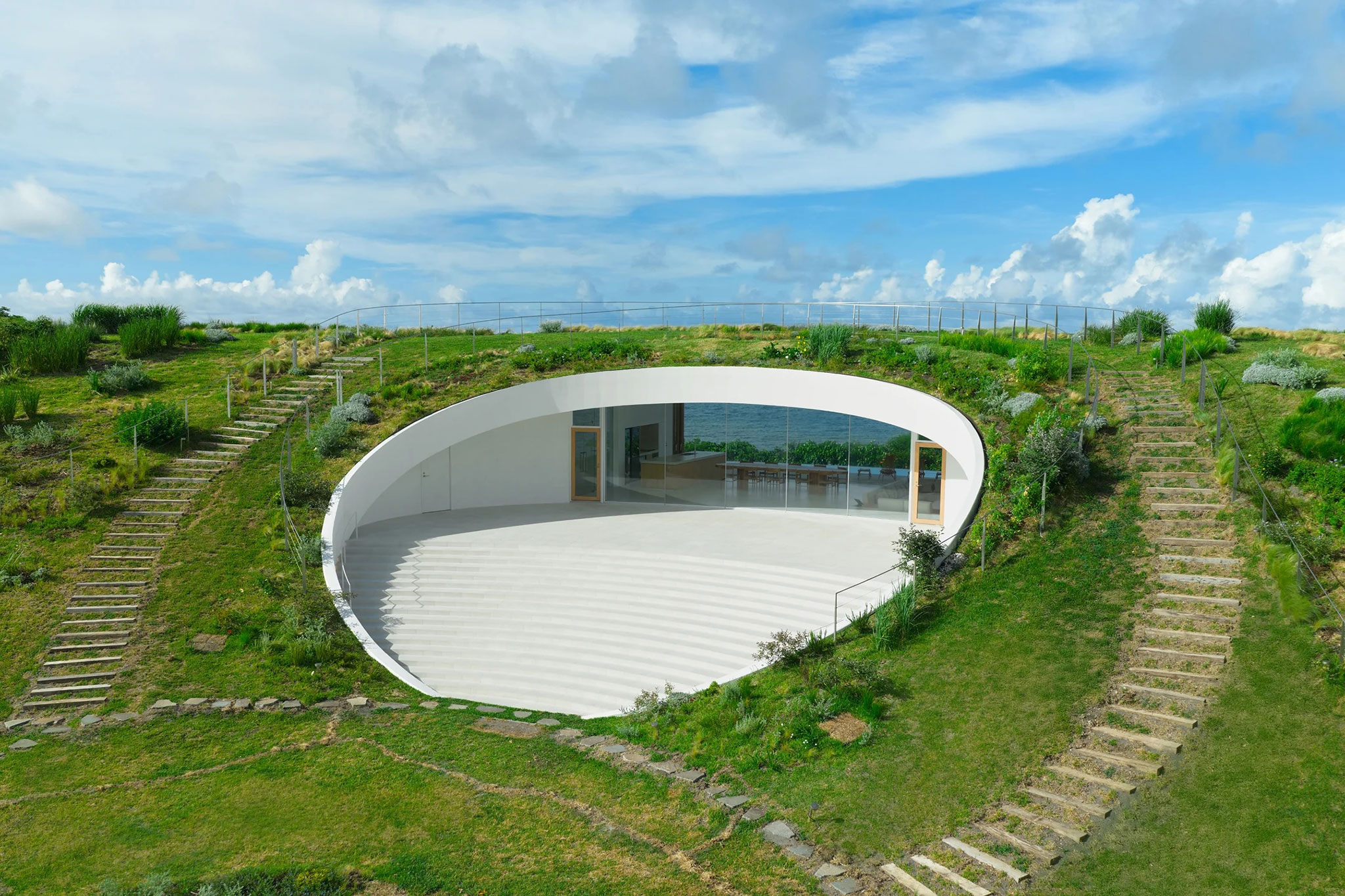 El edificio proyectado por Sou Fujimoto en la isla de Ishigaki se integra de forma orgánica con el paisaje gracias a una suave pendiente cubierta de vegetación que lo conecta con el entorno. Organizado en dos niveles, su altura se adecúa a la de los árboles circundantes, lo que permite una integración visual desde el océano.