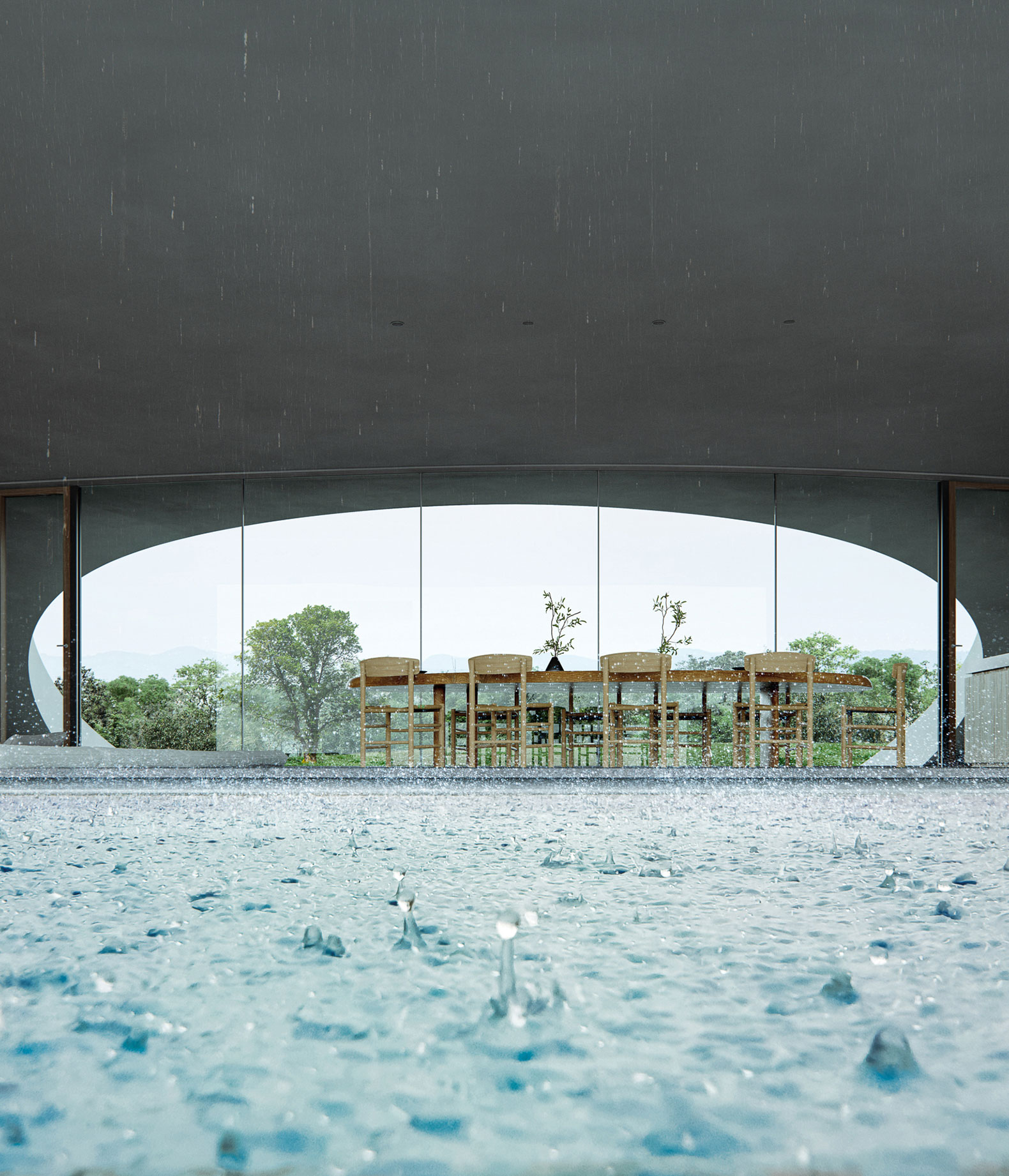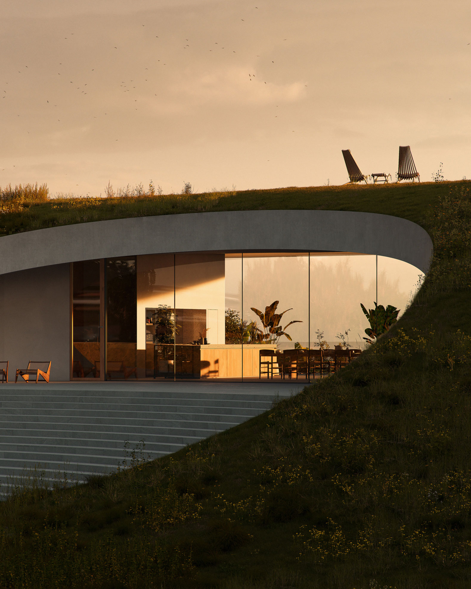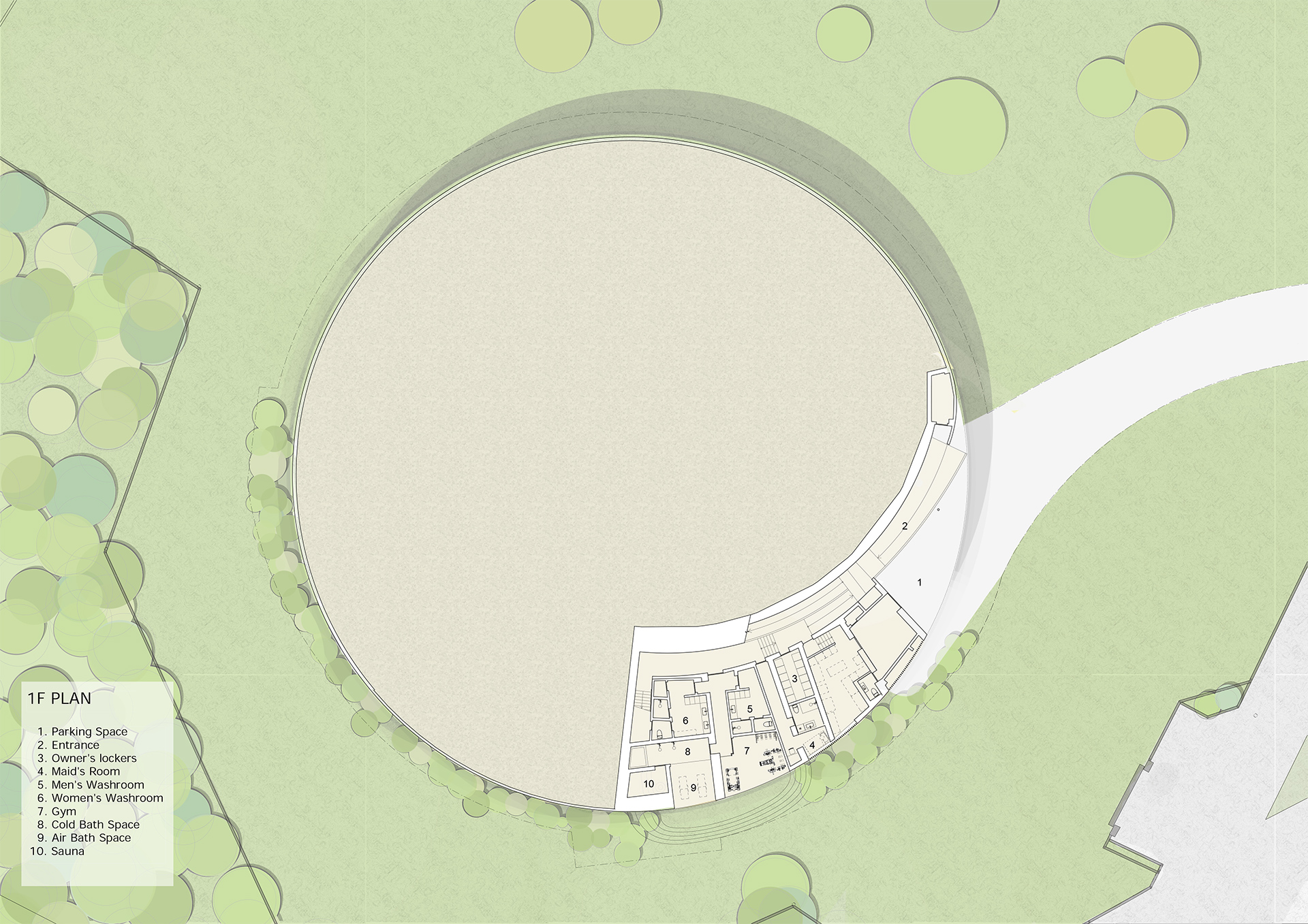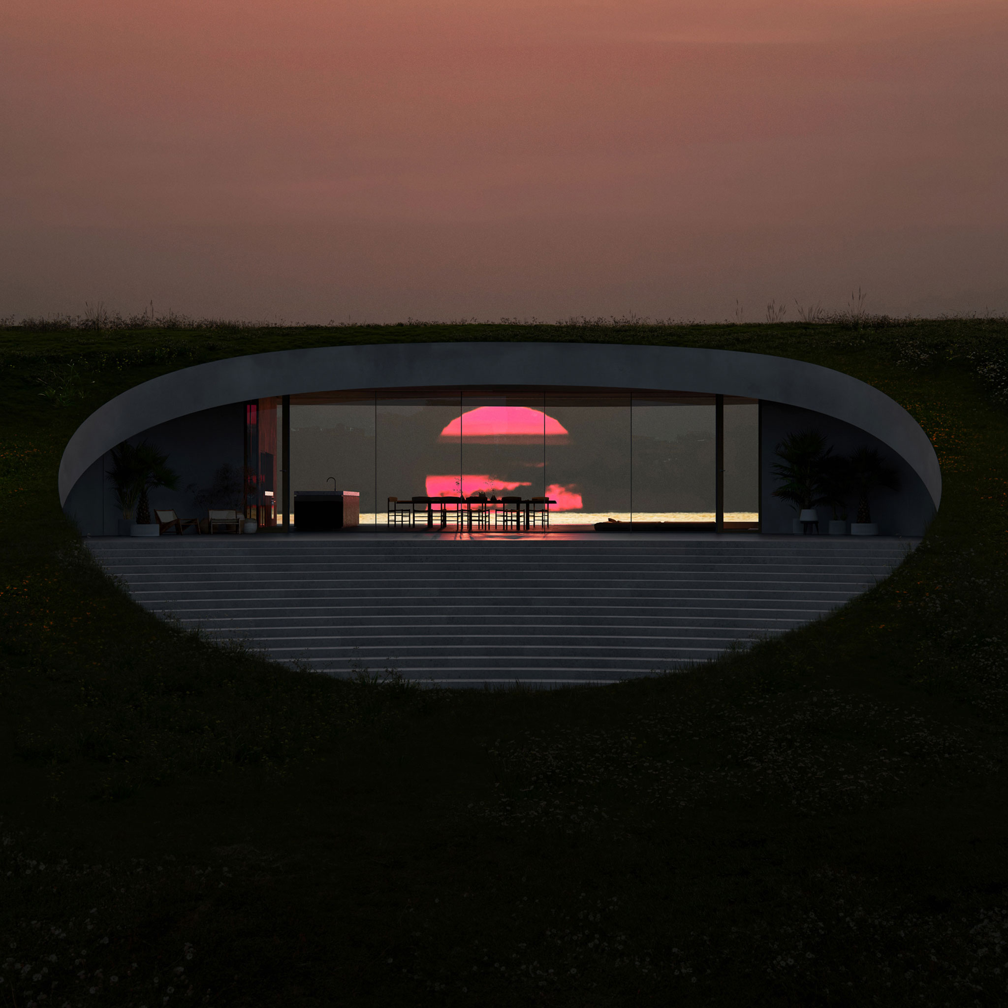 Al crear un ambiente de otro mundo, integrándose a la vez con la vegetación circundante y el entorno de la isla de Ishigaki, se crea una "Tierra" especial, en armonía con la naturaleza.