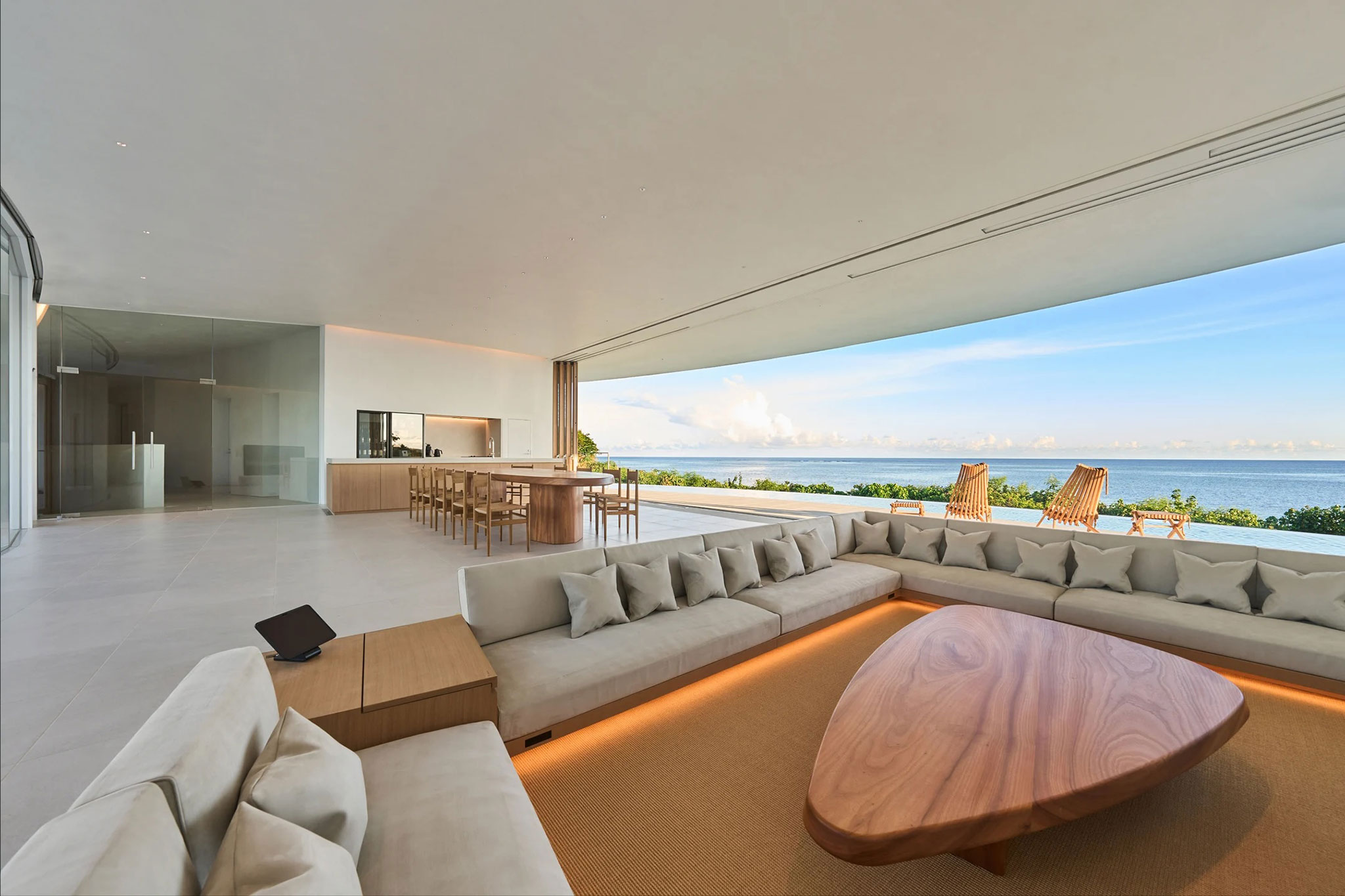 Además del salón-comedor y la piscina con vistas al océano, hay cuatro dormitorios independientes con capacidad para 10 personas.
