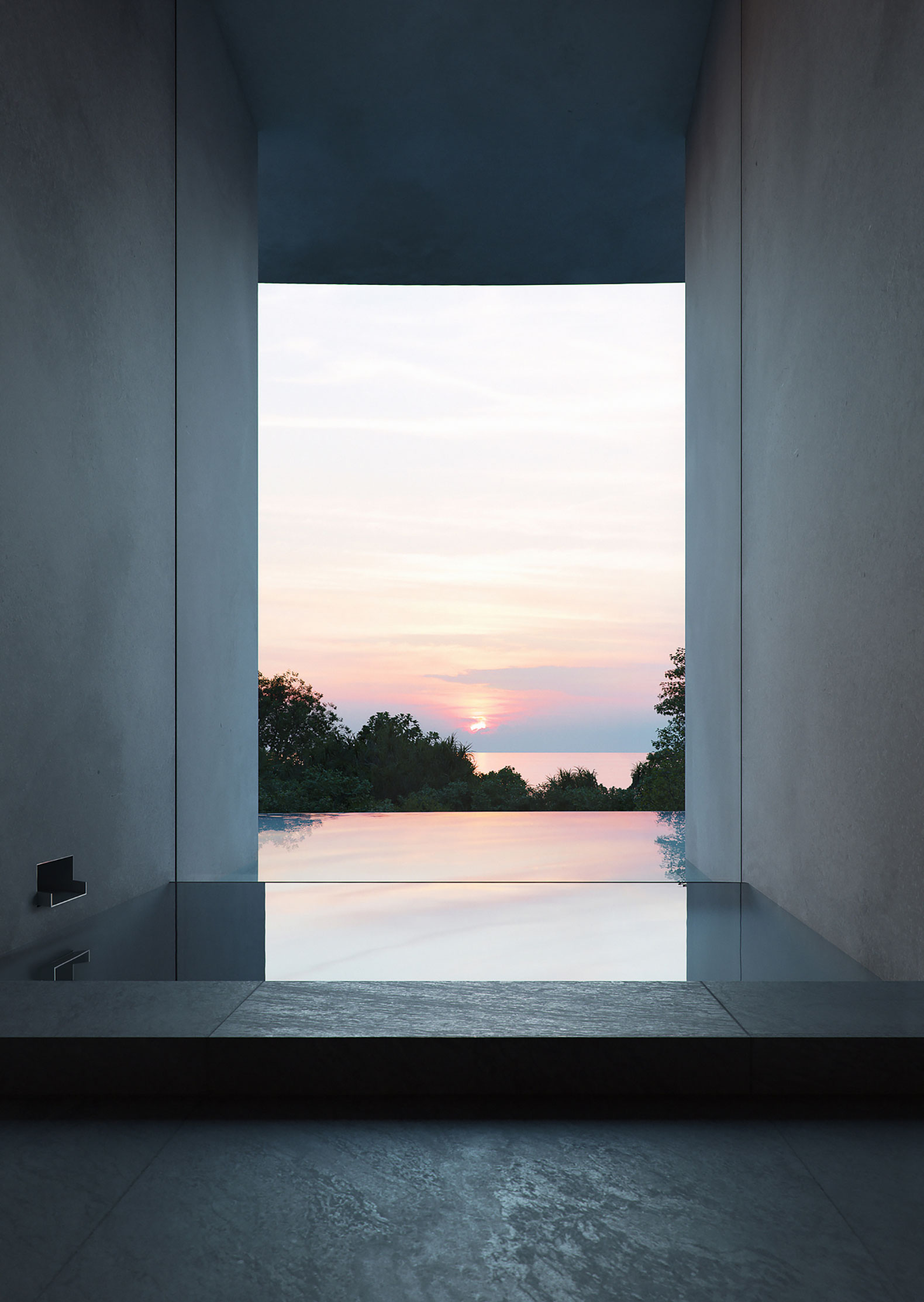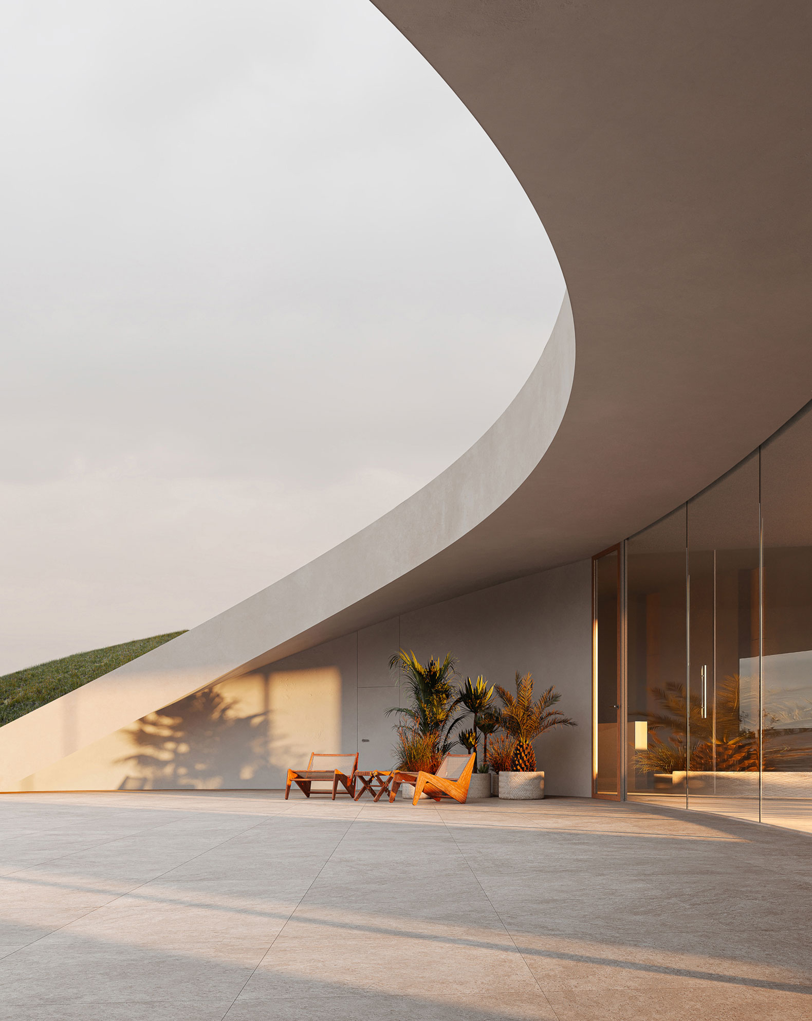 Si bien la vista principal del edificio es hacia el mar, el patio es un mundo aparte. Al entrar en el edificio, se siente como visitar otro planeta, un mundo donde las únicas sensaciones son la atmósfera, el mar y el cielo.