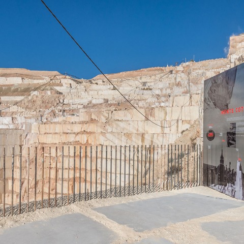 La intervención resuelve una panorámica privilegiada de la extracción de Marmol, de la Cantera Monte Coto, de Levantina, en Pinoso (Alicante).