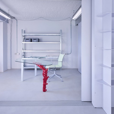 El Apartamento TransMorph no es estático ni predefinido; la estructura de vigas metálicas y pilares de hormigón marca un espacio reconfigurable a través de paneles metálicos deslizantes en forma de T. Las superficies imperfectas de yeso proyectado cubren pilares, cielorraso y núcleo de baño. Un espacio que se expande y se retrae en respuesta a la interacción de sus habitantes, permitiendo la coexistencia de múltiples configuraciones en una misma dimensión temporal.