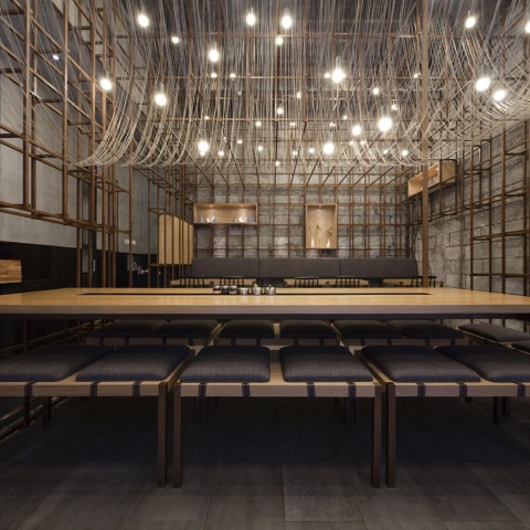 Lukstudio, liderado por la arquitecta Christina Luk, se inspira en un cajón de fideos para aportar un ambiente singular al local de la ciudad china de Changsha. Combina los materiales de acero, bambú y hormigón, que envuelven al usuario en una atmósfera rural. En contraposición a este uso de materiales, se descuelgan bombillas colgantes de cables del modo en el que lo harían los fideos chinos en el cajón durante su preparación, lo que aporta un aspecto urbano y elegante.