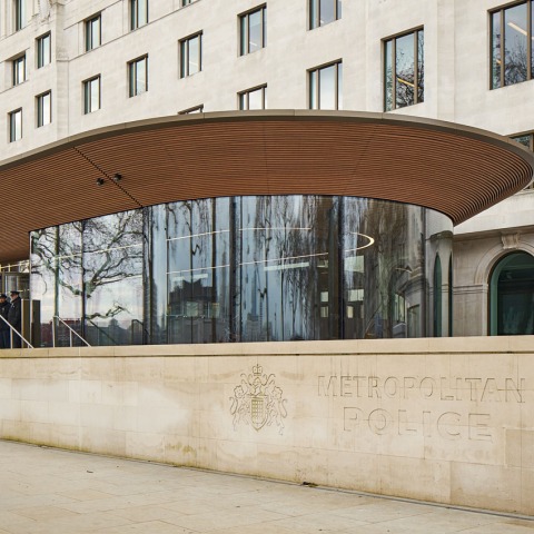 La nueva sede de 70.152.000 millones euros (60 m £) es una re-habilitación y ampliación del edificio Curtis Green Building, en una importante zona ribereña de Westminster, en el centro de Londres, propiedad de la MPS. El diseño de AHMM ha transformado el antiguo edificio obsoleto en una sede compacta, a medida, con la adición de nuevos pabellones de entrada así como una nueva cubierta. Se trata de una completa remodelación del edificio existente. La nueva entrada está diseñada para crear una "puerta principal" acogedora y no institucional pero segura para el MPS.