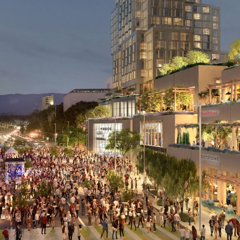 Se han presentado nuevas visualizaciones del proyecto Grand Avenue de Gehry Partners, que incluyen varios edificios en un terreno de tres acres (1,2 hectáreas) en una parcela actualmente ocupada por un estacionamiento, ubicado frente al Walt Disney Concert Hall de Gehry, en el centro de Los Ángeles