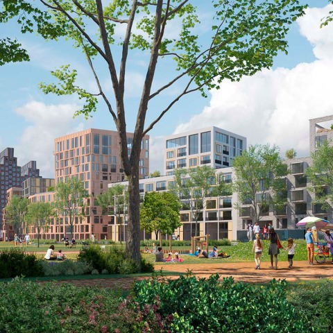 El Marktkwartier será un barrio para todos los habitantes de Amsterdam; Las familias, los solteros, los estudiantes y las personas mayores se alojarán en un variado programa residencial de alrededor de 1700 unidades. El monumental Market Hall, ubicado entre Marktkwartier y el renovado terreno del Mercado Central, formará el corazón del nuevo distrito residencial. El edificio histórico será restaurado a su antigua gloria y será accesible a todos. El edificio del Mercado será la nueva atracción en Amsterdam West e incluirá un hotel, un laboratorio de alimentos para compartir conocimientos relacionados con la comida y restaurantes.