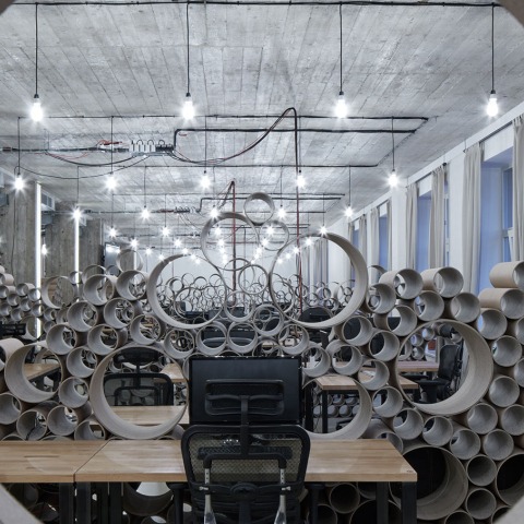 Cada uno de los elementos individuales tiene una historia que contar y proporciona un valor agregado. La división del espacio abierto se crea mediante tubos de papel que también cumplen la función de espacio de almacenamiento, creando la identidad única del proyecto. Las particiones independientes se instalaron durante el fin de semana antes de la apertura del lunes por los propios empleados, con nuestra asistencia y coordinación. El color elegido de la capa de poliuretano es un tinte de marfil, el color que le dio a Winternitz Villa el título de la "princesa de color beige". Este color también apareció en la pintura con rodillos utilizada, que en sí misma fue un desafío para el pintor para repasar sus viejas habilidades. Gran parte del mobiliario interior es el resultado de una búsqueda exigente en las tiendas de antigüedades, combinada con sillones reformados, así como la inclusión de elementos nuevos de un fabricante checo establecido. La más grande de las mesas, un artículo de 750 kg hecho de restos de madera de roble, es un ejemplo de sofisticación combinada con una artesanía excepcional, que enfatiza perfectamente la dignidad de la sala de reuniones principal. La iluminación utilizada es en gran medida la salida de una de las divisiones de la empresa.