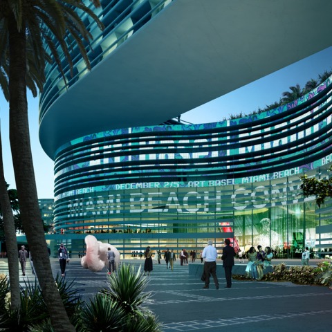 Mientras que el centro de convenciones de Miami Beach (MBCC) es un gran recurso cultural y económico de Miami Beach, se ha convertido en un bloqueo físico en la ciudad. Aquí la playa se detiene y comienza asfalto, con una serie de plazas de aparcamiento abiertas, implacables fachadas cerradas y un tejido urbano desconectado. Girando de manera efectiva la construcción, hemos conseguido que sea al mismo tiempo un mejor ciudadano en Miami Beach y un centro de convenciones más eficiente. Nuestro plan reorienta los salones de exposición de norte a sur, aclarando al mismo tiempo la organización interna del edificio y su relación con la ciudad que lo rodea. Consolidado en el norte, y con el nuevo vestíbulo y la entrada principal, ubicados en el sur, el edificio tiene una imagen clara hacia Lincoln Road, manteniendo al mismo tiempo el acceso en el lado este para los visitantes a pie de los hoteles de playa cercanos.