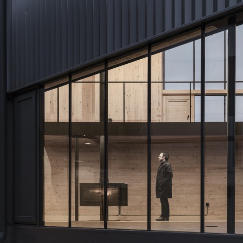 Reforzando la condición abstracta del volumen y su contraste con la casa antigua, el hueco desaparece en favor de un sistema de planos corridos inferiores que recorren las caras este y sur del pabellón —así como una de las caras de la pasarela de conexión con la preexistencia— con el fin de potenciar, además de una mayor captación solar, el diálogo entre ambos cuerpos hermanos, así como la observación de las vistas próximas y lejanas del entorno natural. La cara norte del nuevo volumen, cuya superficie es principalmente ciega, incluye un gran plano de vidrio que introduce luz uniforme en su interior y sirve, a su vez, como gran ojo de cíclope que se asoma a las nevadas cumbres de Valdelinares. En ambos casos, los planos de vidrio incorporan de forma integrada ventanas practicables ciegas de madera que posibilitan la ventilación cruzada.