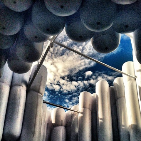 Los visitantes de Design Miami / 2012 serán recibidos por un ambiente flotante compuesto por enormes tubos inflados, parecido a un paisaje topográfico en suspensión: una montaña ascendente por encima y por debajo de una caverna excavada.
