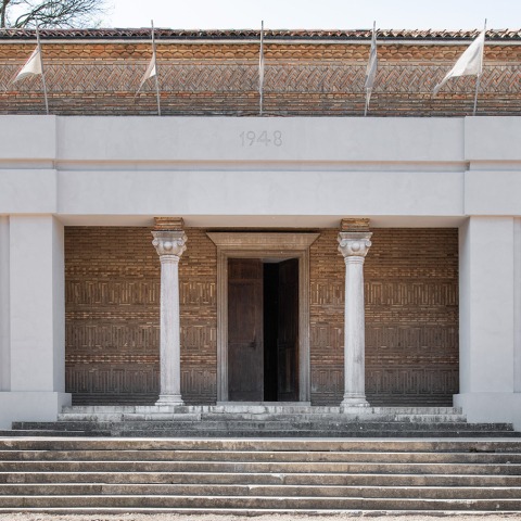 El año pasado, la Colección Peggy Guggenheim de Venecia dedicó una retrospectiva al pabellón, con motivo de su septuagésimo aniversario. En 2019 se puede encontrar un arquitrabe blanco, coronado por banderas blanquecinas, grabado con un año específico: 1948 en la entrada del Pabellón griego.