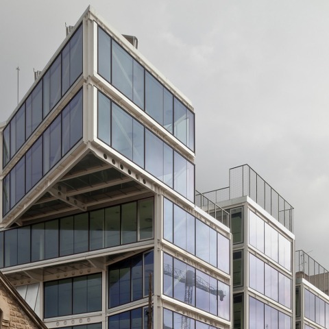 De ahí que el edificio se organice a partir de una crugía optima para el uso de oficinas, por lo que resultan tres volúmenes cruzados, de la calle Pere IV a Pujades. Una volumetría que resigue el antiguo parcelario como se observa en el mismo alzado de los edificios en fachada, y que dispone entre ellos de unas calles_patio de dimensión menor, lo cual permite una buena iluminación de los espacios útiles, además de permitir el cruce transversal.