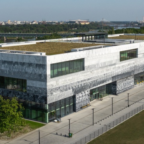 «La fachada del Museo de Historia de Polonia está revestida con losas de mármol de diferentes vetas. Están dispuestos en franjas horizontales, enfatizando la estructura estratigráfica en capas. Es una estructura inherente a la materia geológica, pero también a nuestra arqueología: a los procesos naturales, sociales y culturales que se suceden uno tras otro. Por eso optamos por el mármol, que es una piedra con una veta muy característica. Cada una de las losas de mármol es diferente, única, como toda historia se compone de acontecimientos únicos e individuales»