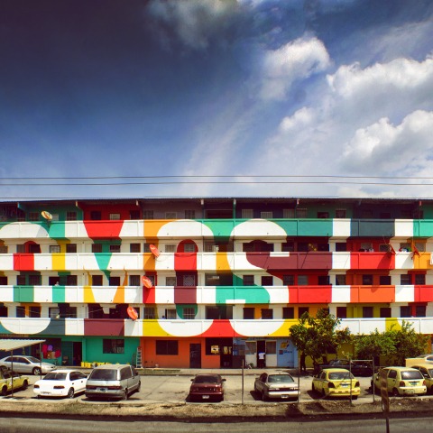 Somos Luz es el mensaje con el que el colectivo de artistas españoles Boa Mistura, ayudados por los propios vecinos, han intervenido las 50 viviendas del edificio Begonia I en el barrio de El Chorrillo (Panamá ciudad).