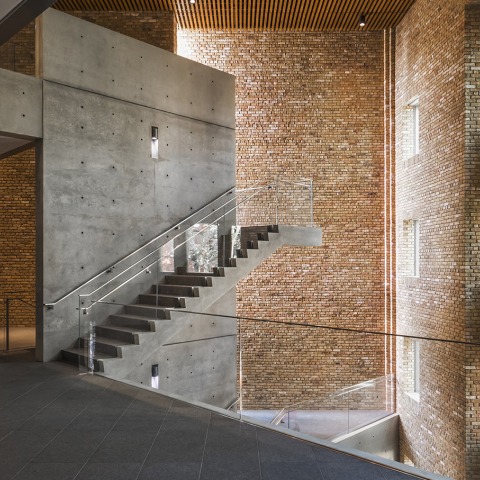 El exterior, una cáscara de mampostería perimetral del ladrillo rojo fue rehabilitada; y es solo cuando el visitante ingresa en el interior cuando descubre la mano de Ando visible en la nueva estructura. Allí, aparece una torre de escaleras de hormigón armado, colocada en ángulo, que contrasta con el ladrillo común de color tostado, rescatado de la estructura original, que se alinea en las paredes del atrio.