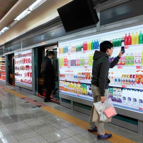 La compañia de supermercados TESCO quería ser la primera en Corea y creó está estrategia digital para acercarse al número 1. Los resultados se lograron mediante la instalación de reproducciones de las góndolas del super en los pasillos del tren subterráneo.