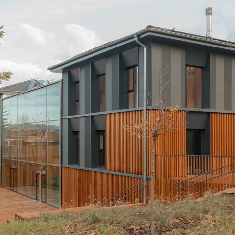 Vaumm se encarga de reorganizar el antiguo edificio en forma de U en una caja de madera exenta que articula las circulaciones del edificio gracias a una escalera y unas pasarelas que hacen las veces de pasillo, lo que sumado a la apertura del interior al paisaje, transforma la relación del edificio con su entorno y mejora las condiciones espaciales, antes oscuras y cerradas.