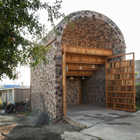 Junto a la biblioteca local, la comunidad donó un terreno para el Proyecto Kithara donde diseñamos una bóveda para la recolección de lluvia, construida con mampostería de escombro; y un tapanco acústico hecho con madera reutilizada. El salón de clases superior de la construcción está orientado hacia el Volcán Xaltocan, importante referente geográfico en Iztapalapa, mientras que el salón de clases de la planta baja está inclinado hacia la esquina de dos calles, con el fin de abrirse a la ciudad, para poder realizar eventos públicos para los citadinos.