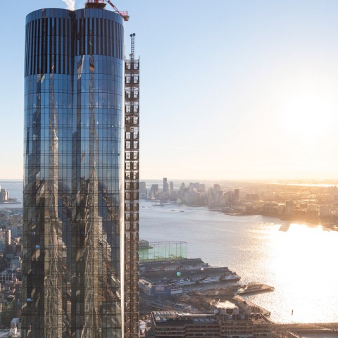Servicios (nivel 50-51) Los residentes pueden nadar vueltas mientras disfrutan de amplias vistas de la ciudad en el piso 50, totalmente dedicado a actividades de bienestar que incluyen 12,000 pies cuadrados de spa, salón y gimnasio. Un piso más arriba, el piso 51 es un espacio de reunión con salones, comedores privados, una sala club y un espacio de trabajo colaborativo de última generación. Unidades residenciales El lenguaje de diseño de las unidades residenciales se expande en el uso del lobby de materiales ricos como pisos de roble continental en un acabado de aceite natural y piedra travertina de Italia. Se han concebido cinco tipos de residencia (Plaza, Loft, Panorama, Penthouses, Duplex Penthouses) y dos esquemas de diseño de interiores para proporcionar viviendas distintivas y exclusivas de Nueva York. Amenidad (Nivel 67) El piso 67 (el más alto de la torre) ha sido concebido como un accesorio en la azotea que se siente como una extensión de un ático. Dos espacios flexibles para eventos en los lados este y oeste del piso están separados por un salón al aire libre de 2,000 pies cuadrados que ofrecerá algunas de las vistas al atardecer más impresionantes de la ciudad.