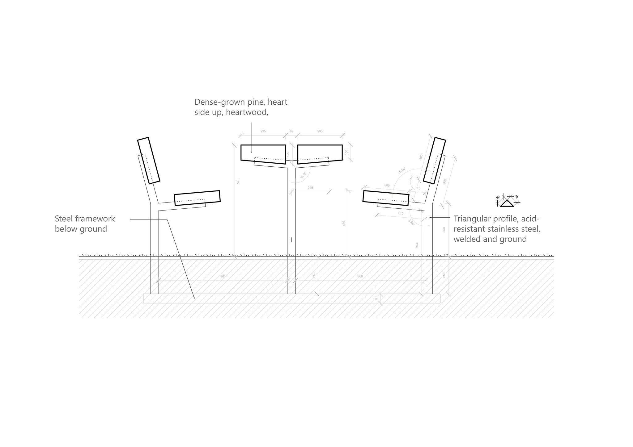 A lo largo del recorrido, los bancos se ubican tanto en lugares accesibles y prácticos como en lugares más inesperados: escondidos en el límite del bosque, en pequeñas elevaciones o cerca de la orilla. Esto crea un ritmo de familiaridad y sorpresa, ofreciendo tanto comodidad como descubrimiento. Cada banco define una pequeña situación en sí misma: un lugar para descansar, observar o encontrarse con otros.