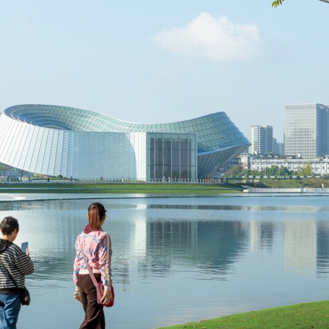 El diseño de la cubierta ondulada del museo cambia de apariencia según los diferentes ángulos, creando un símbolo atemporal de la ciudad de Hangzhou.