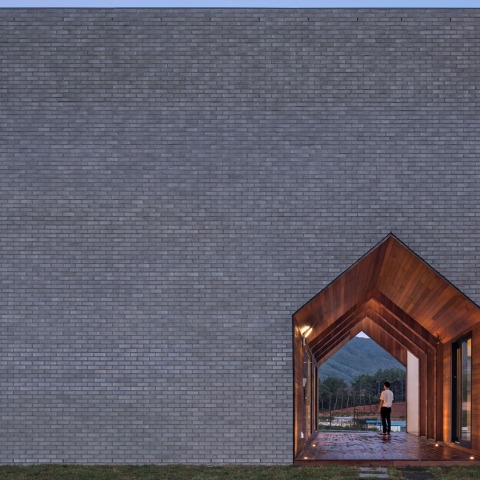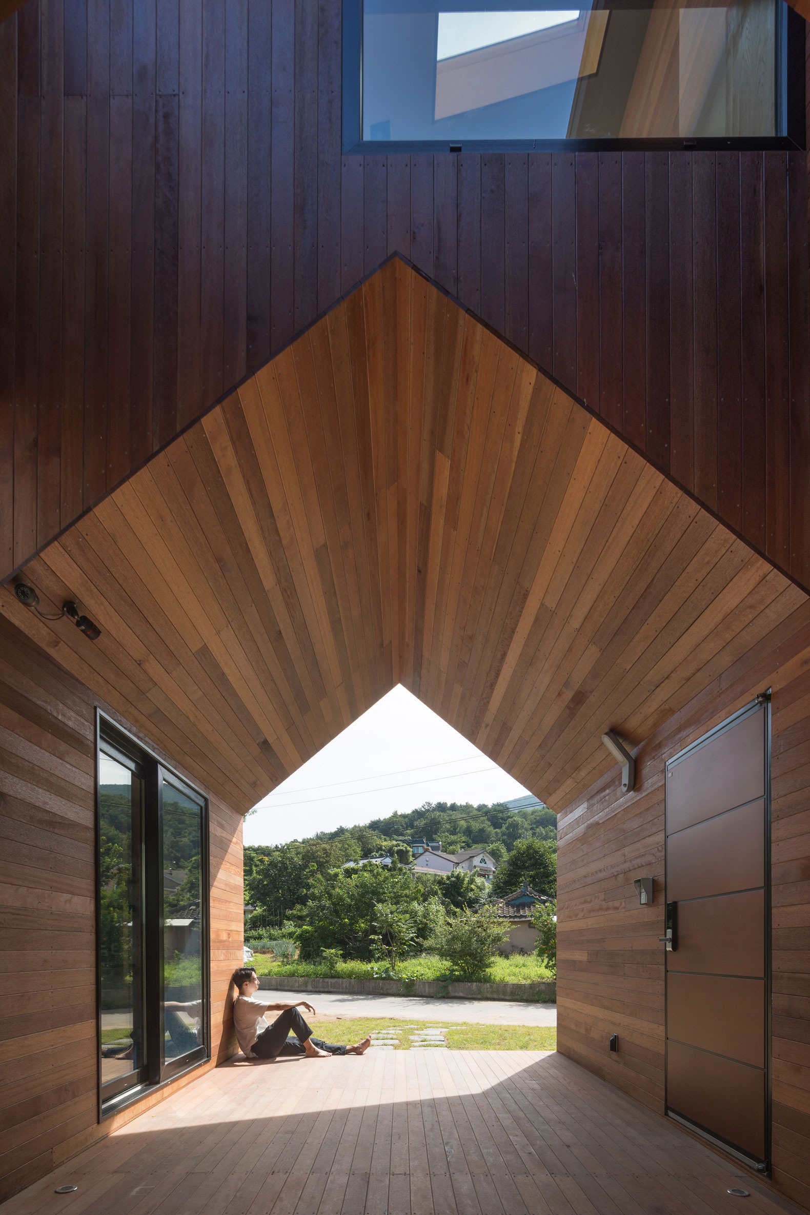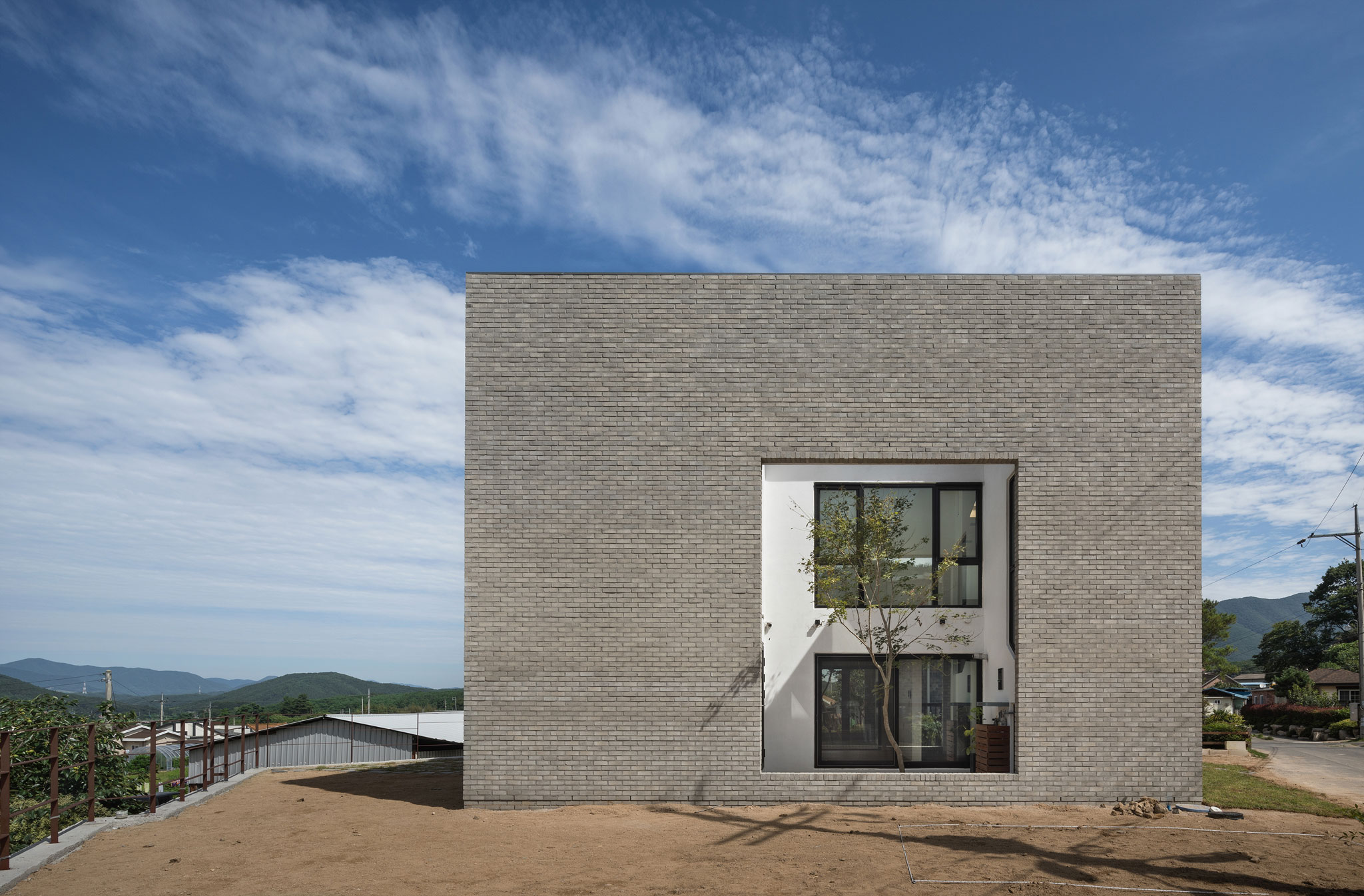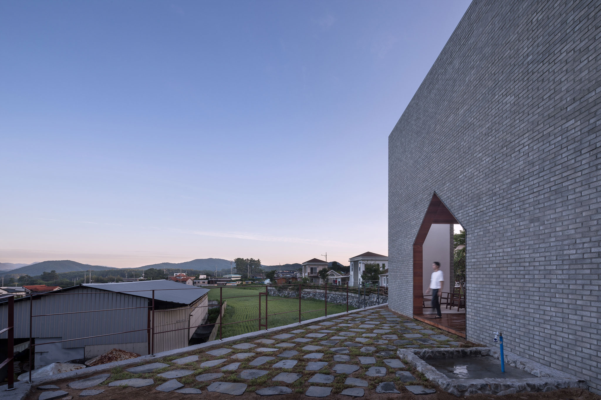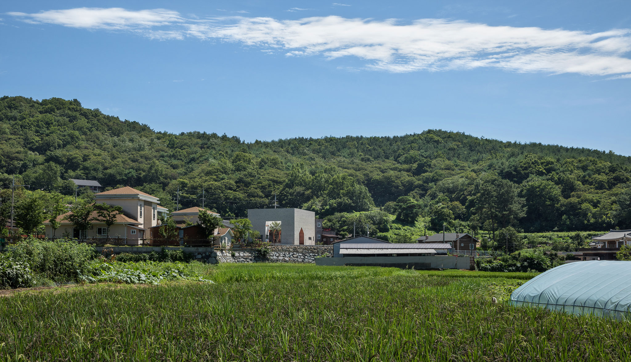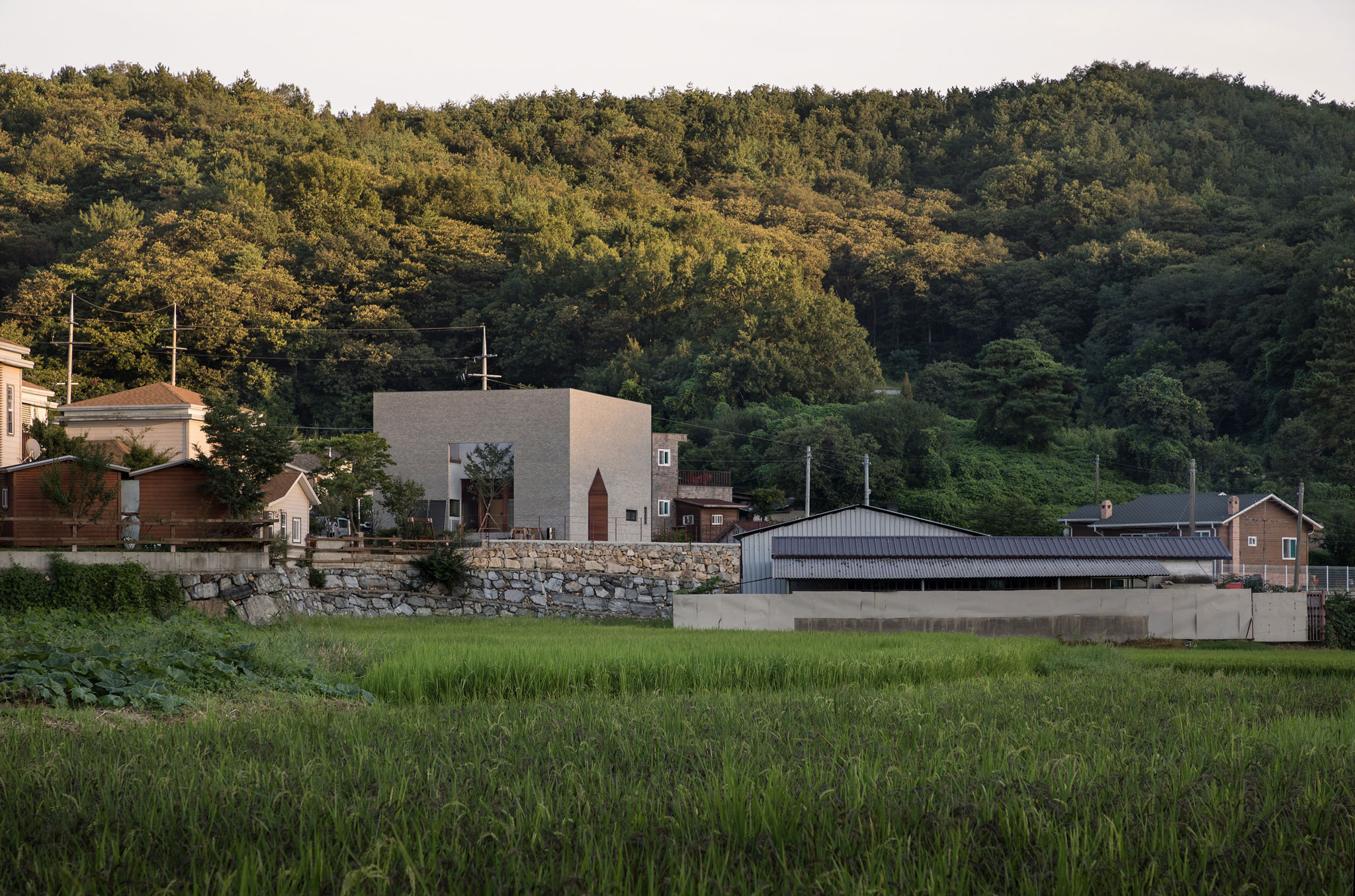 Está a 30 minutos de Ulsan y hay muchas personas que emigran para disfrutar de la vida rural en estos días. La mayoría de los migrantes aquí compran parcelas que han desarrollado montañas y campos para uso residencial. El lugar encargado fue una de estas casas. Tres casas de tipo americano ya estaban aquí. Colocar diferentes tipos de edificios donde las mismas formas están una al lado de la otra crea un paisaje incómodo en términos de localidad y contexto. Pero cuando el paisaje inconveniente forma todo el paisaje, nos acostumbramos.
