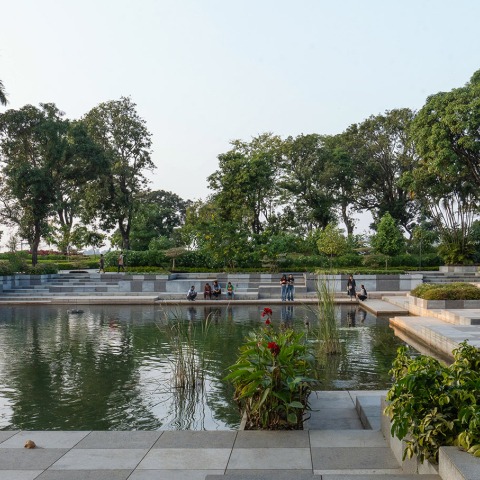 El proyecto rejuvenece un estanque natural de nenúfares, crea una nueva orilla del río a lo largo del Brahmaputra y conecta el sitio sin problemas con el museo patrimonial adyacente, fomentando la interacción pública.