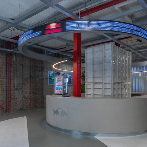 Como resultado de este pretexto, Red Bull Spain Headquarters dedica solo dos de sus cinco plantas a funciones laborales, mientras que las otras tres plantas están destinadas a crear un entorno multifuncional que amplía la experiencia de la oficina adaptándose a las necesidades e inventiva de los trabajadores y de la comunidad Red Bull.
