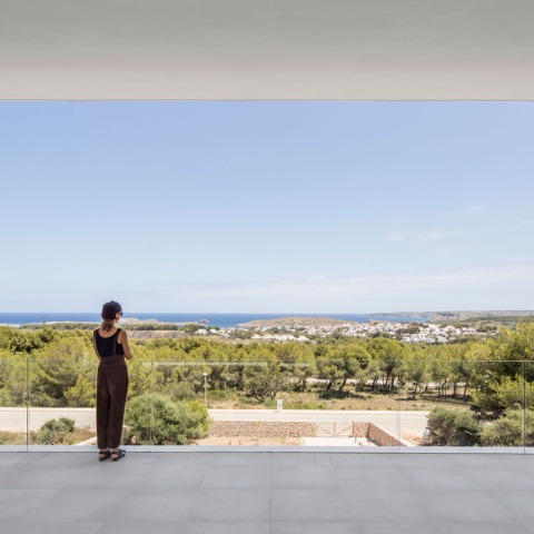 La parcela está ubicada en la costa noreste de Menorca, España, dentro de la urbanización Coves Noves con una magnífica vista sobre el mar. La inclinación pronunciada de la parcela junto con las regulaciones del sitio hicieron que el posicionamiento de la casa fuera muy limitado. Para evitar que la casa en frente bloquee las vistas, la casa fue situada en el punto más alto de la parcela y la entrada principal estaba ubicada en el primer piso. Para garantizar aún más esta vista clara, el programa tradicional se invirtió para que la zona de día se ubique en el primer piso y las habitaciones en la planta baja. Solo se puede encontrar el dormitorio principal en el piso superior, respondiendo a la solicitud de los clientes de tener una casa de verano fácil de abrir y cerrar para estancias de fin de semana cortos donde quizás solo la pareja viva allí. De esta manera, la casa puede entenderse como un loft de un solo nivel con una extensión para sus hijos e invitados.