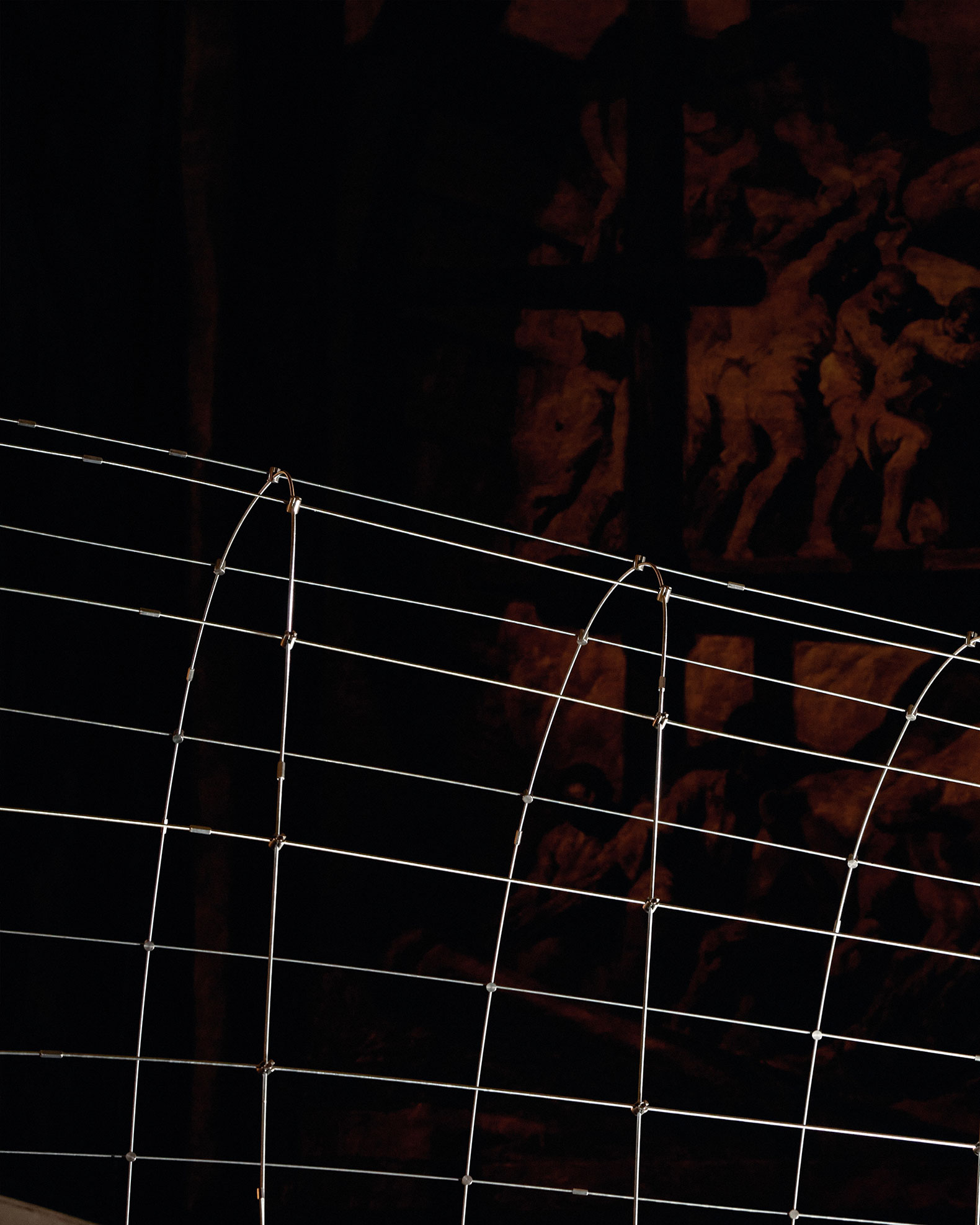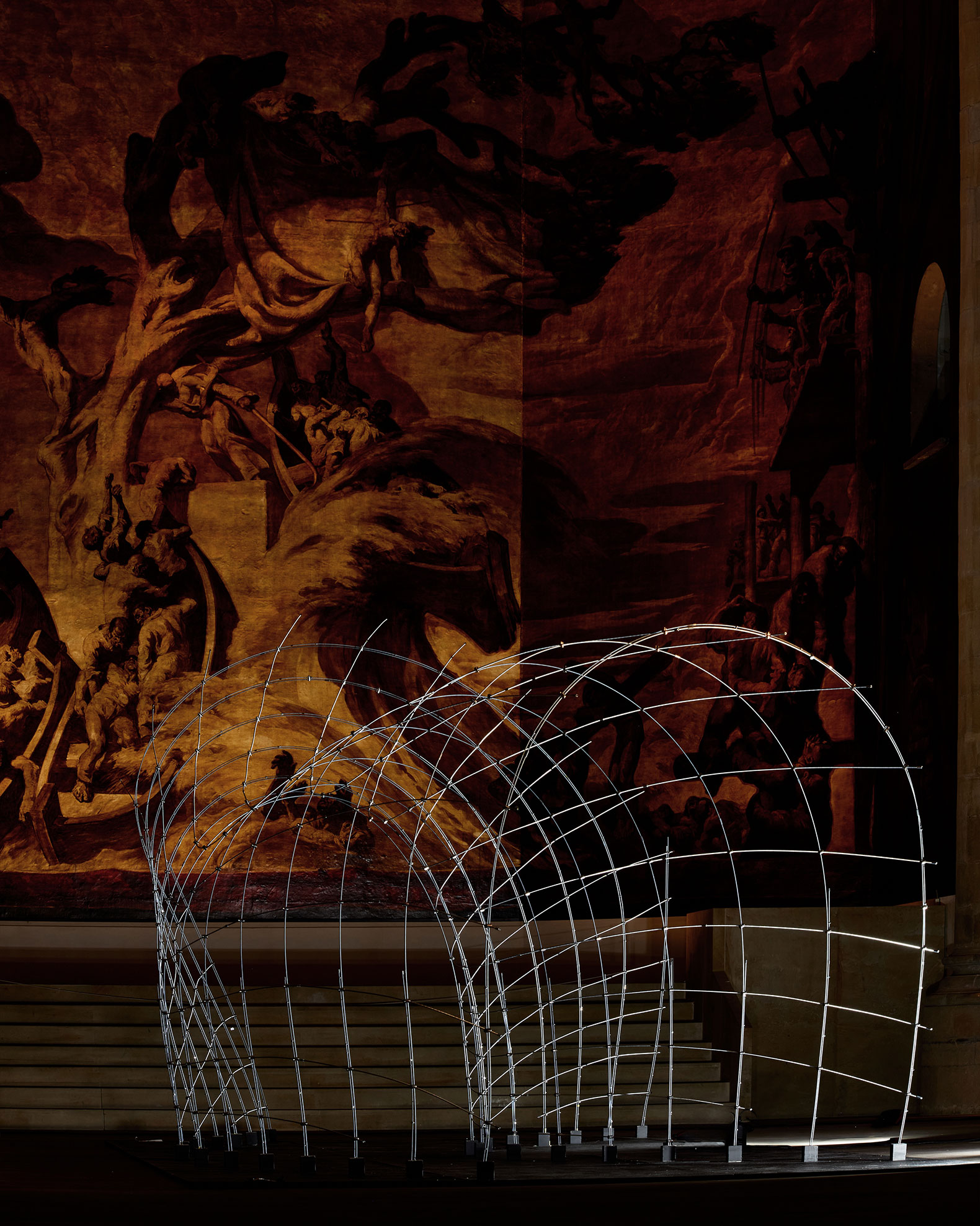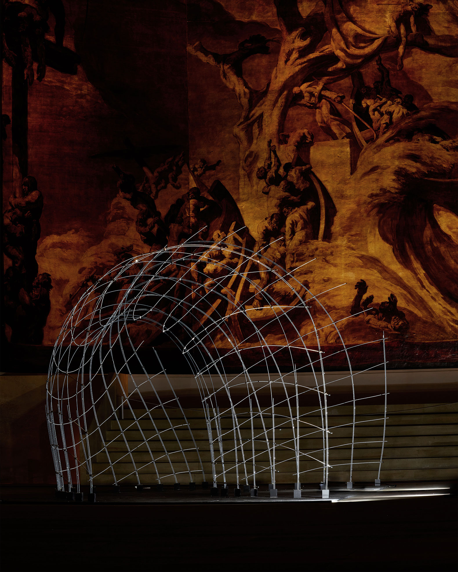 El espacio elegido para la construcción es la nave de la Iglesia del Museo de San Telmo, antiguo convento franciscano de la ciudad de San Sebastián, hoy Museo Antropológico. El lugar, casi mágico, permite la superposición visual de las lineas que conforman el pabellón con las nervaduras de las bóvedas que cubren la nave.