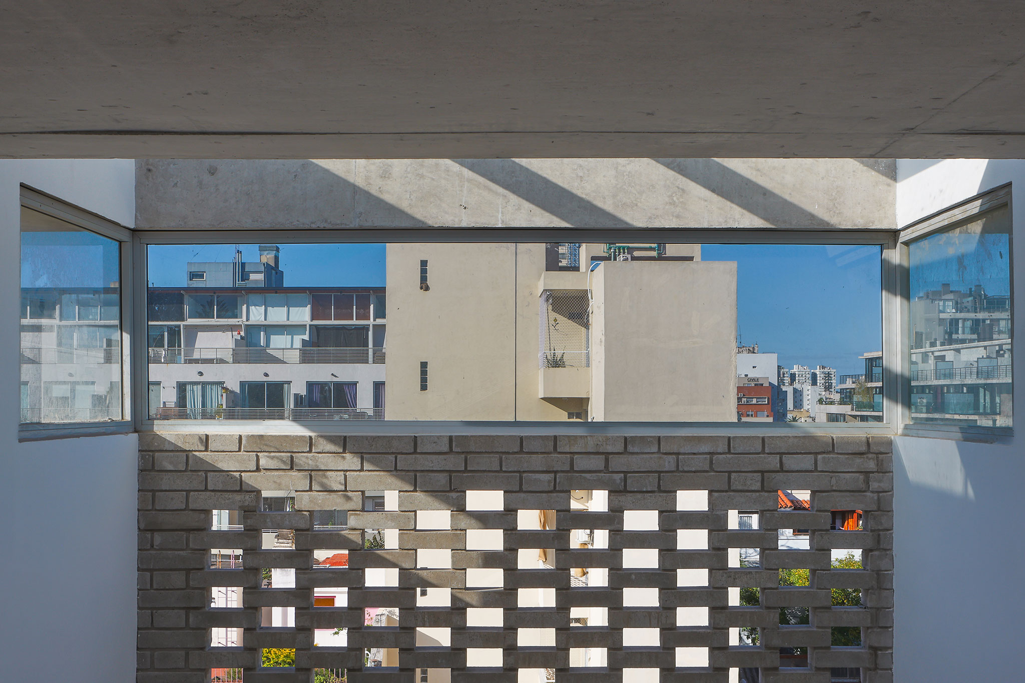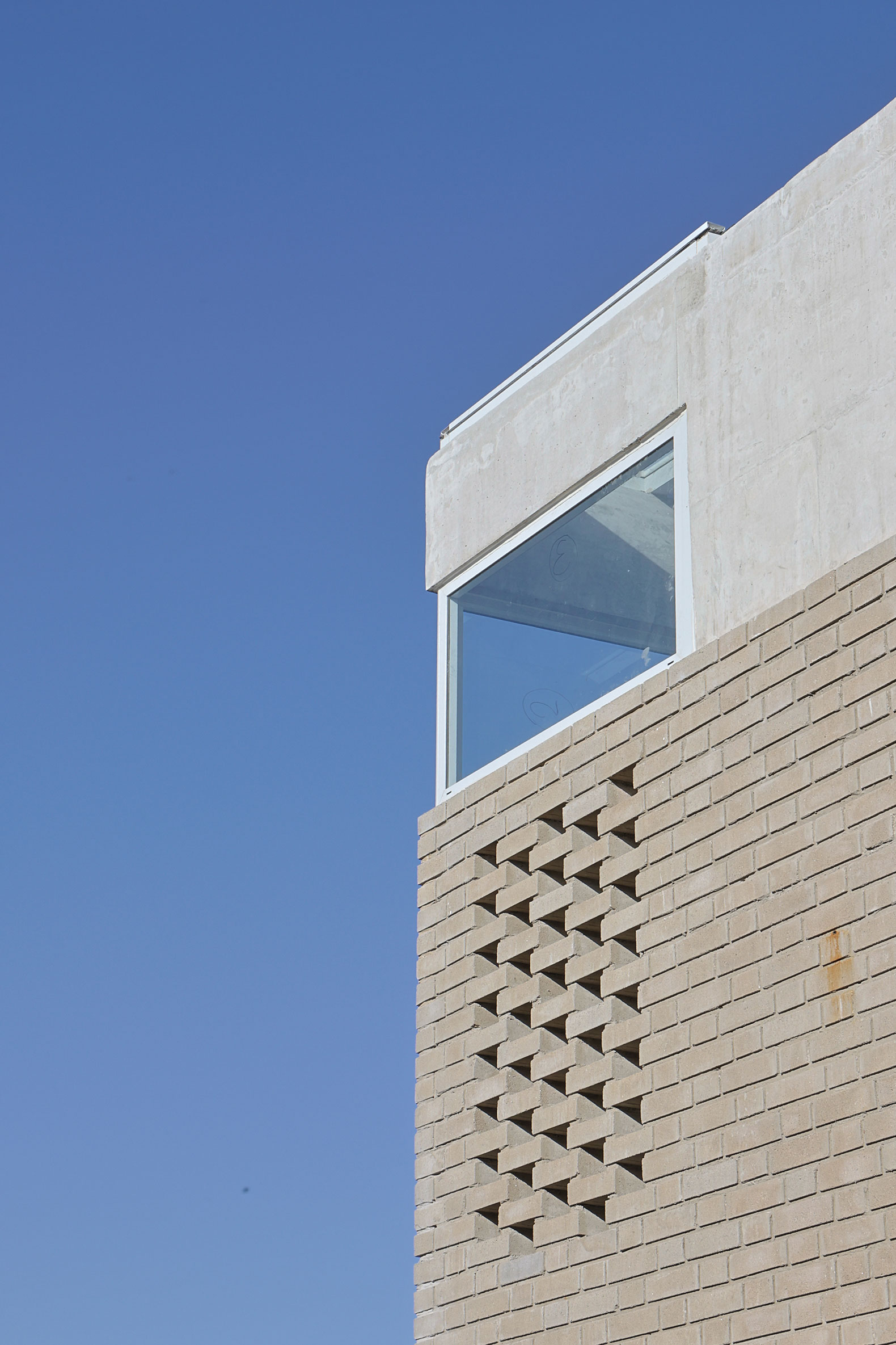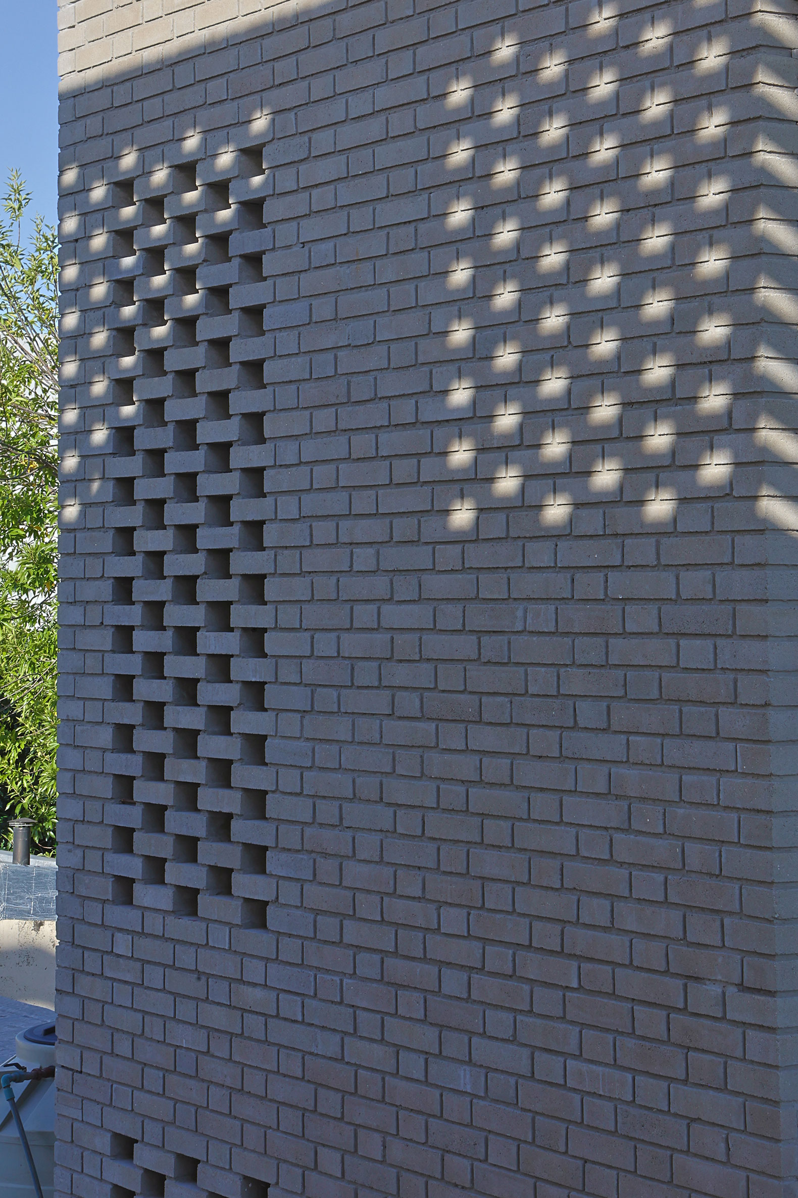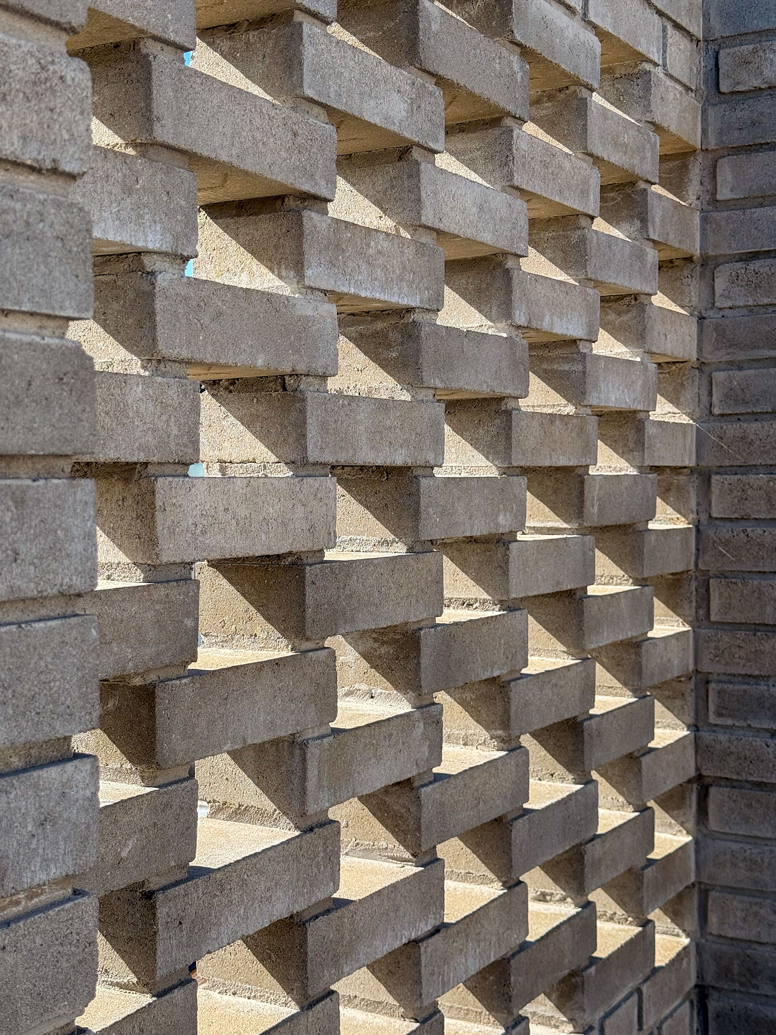 El edificio, de esta manera, maximiza su capacidad constructiva, a partir de una envolvente mono material utilizando el ladrillo Bricko de Corblock. En ese sentido se permite una experimentación material a partir de diversas operaciones morfológicas precisas (repetición, sección, vinculación) para asumir su propia complejidad, e investigar los encuentros, las disposiciones, los modos de unión y las fijaciones con la intención de configurar una atmósfera deseada (luz y espacio en una interpelación constante).