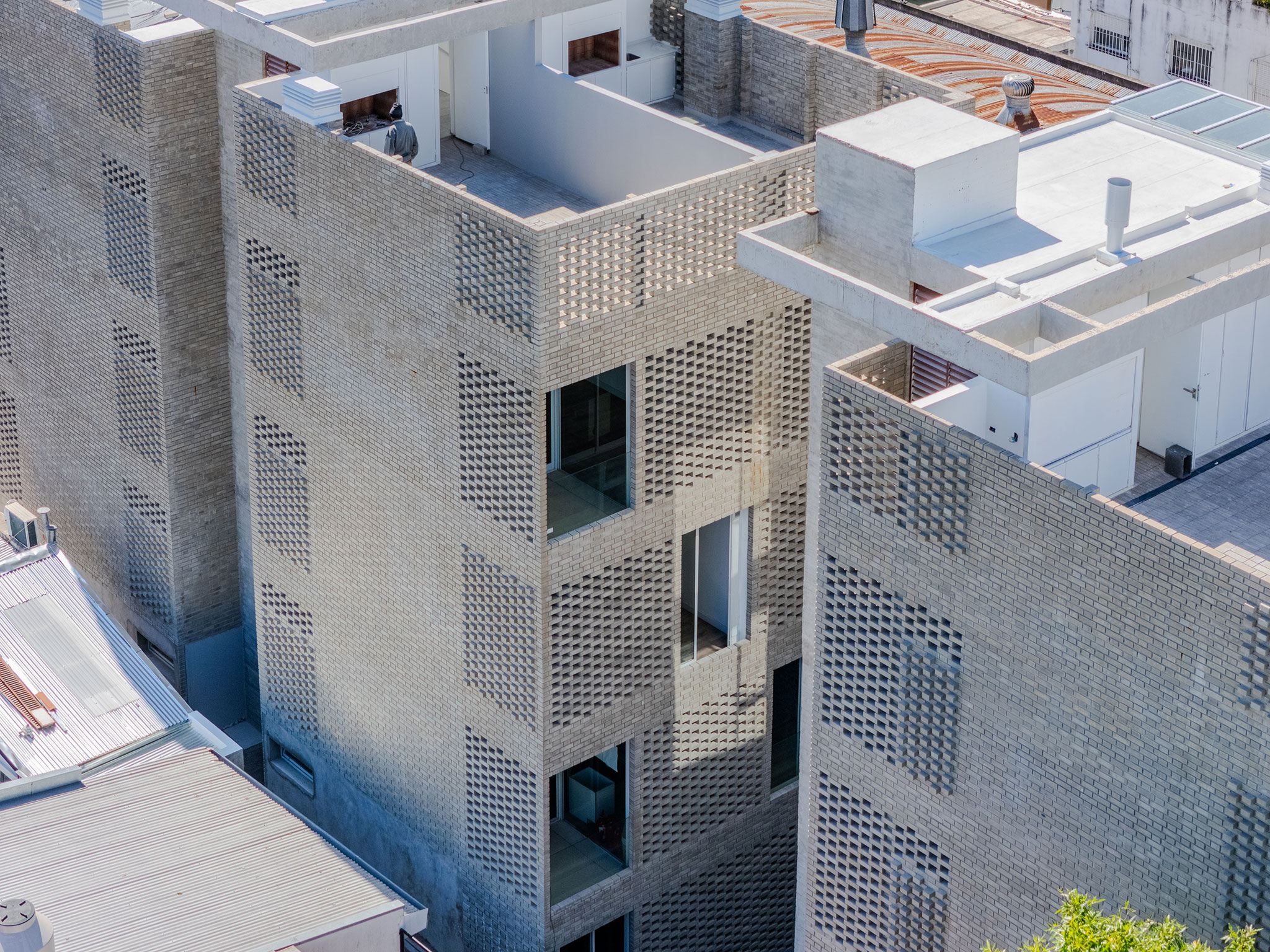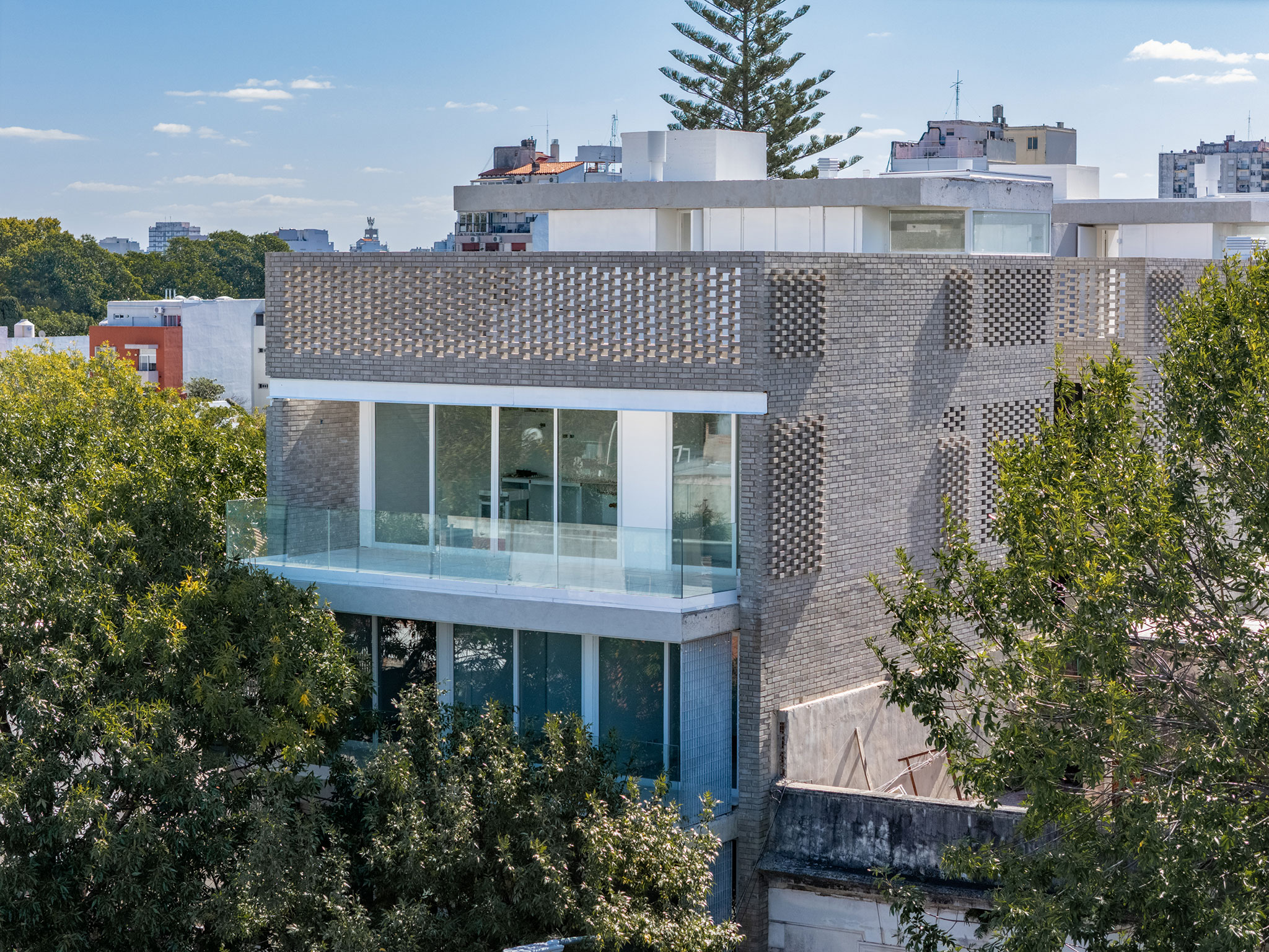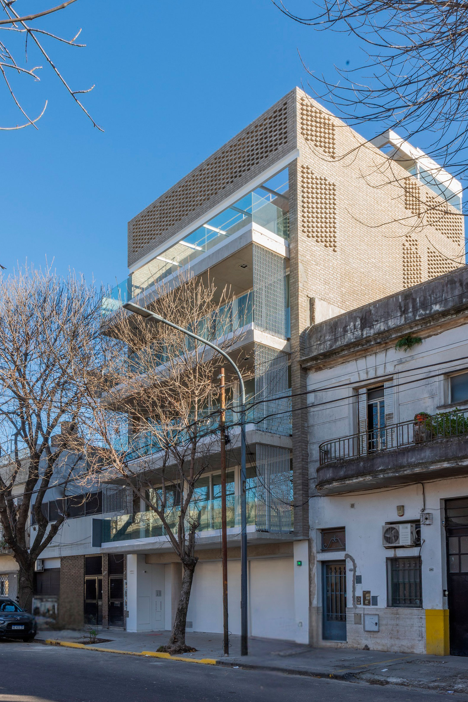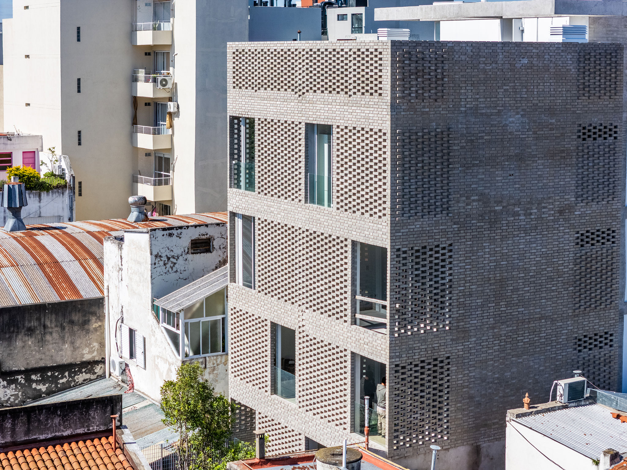 Dos volúmenes articulados por patios configuran el edificio de vivienda colectiva desarrollado por Estudio Arqtipo. A partir de la utilización de un único material para la envolvente —el ladrillo—, el proyecto experimenta y explora diferentes combinaciones morfológicas que permiten gradientes de iluminación y privacidad, según sea necesario.