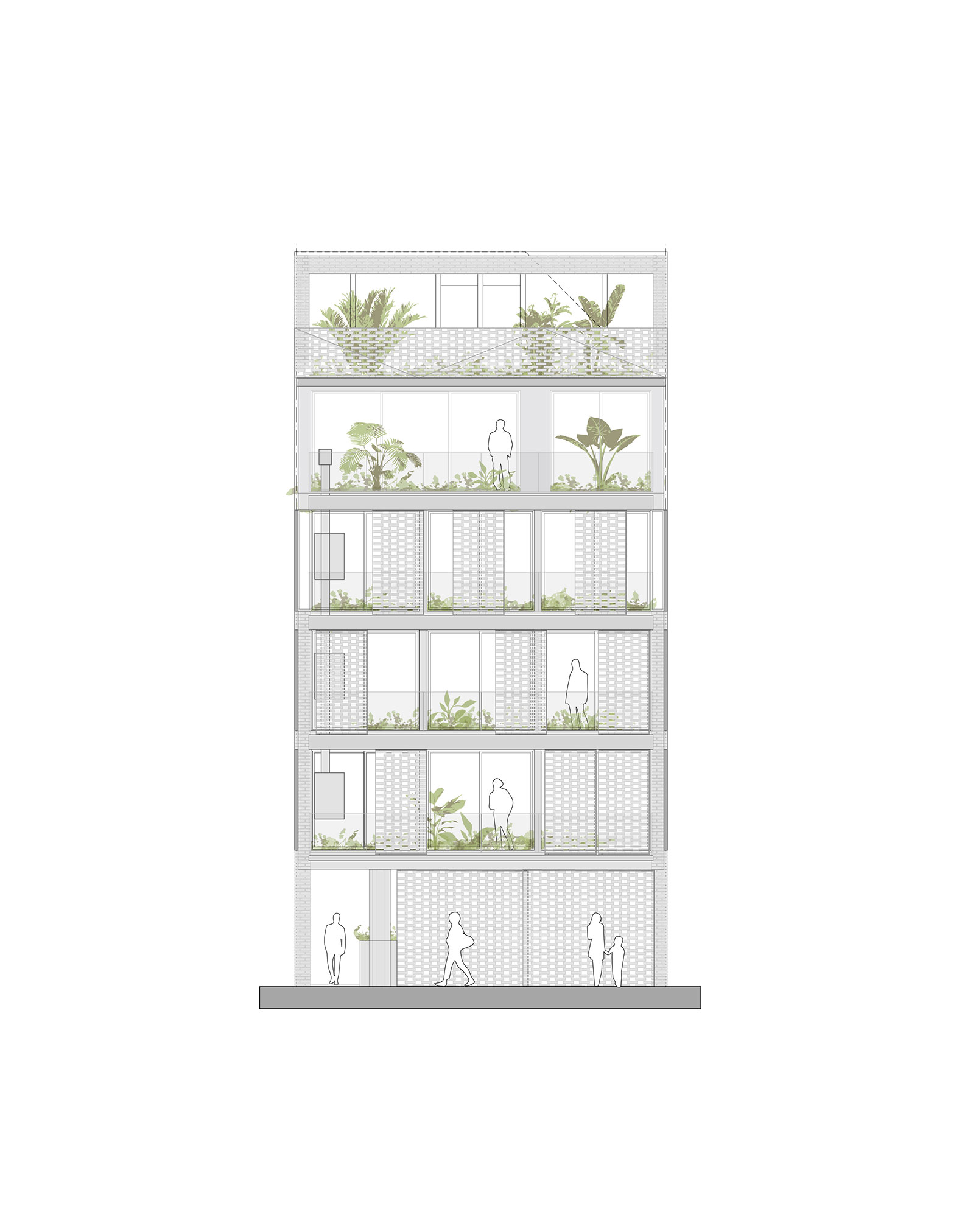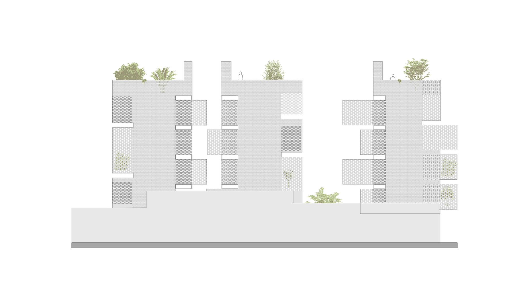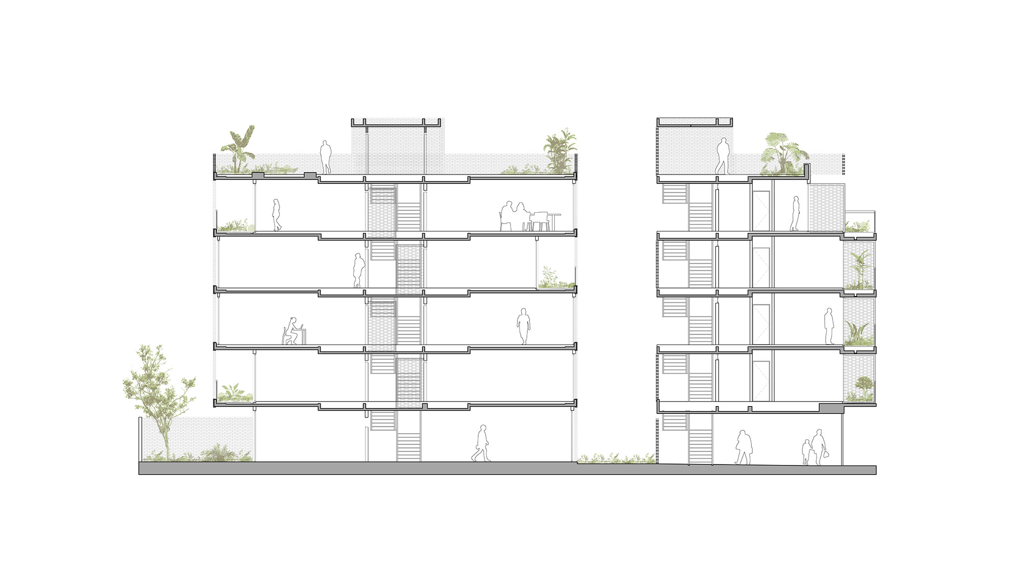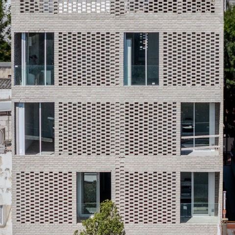 Dos volúmenes articulados por patios configuran el edificio de vivienda colectiva desarrollado por Estudio Arqtipo. A partir de la utilización de un único material para la envolvente —el ladrillo—, el proyecto experimenta y explora diferentes combinaciones morfológicas que permiten gradientes de iluminación y privacidad, según sea necesario.