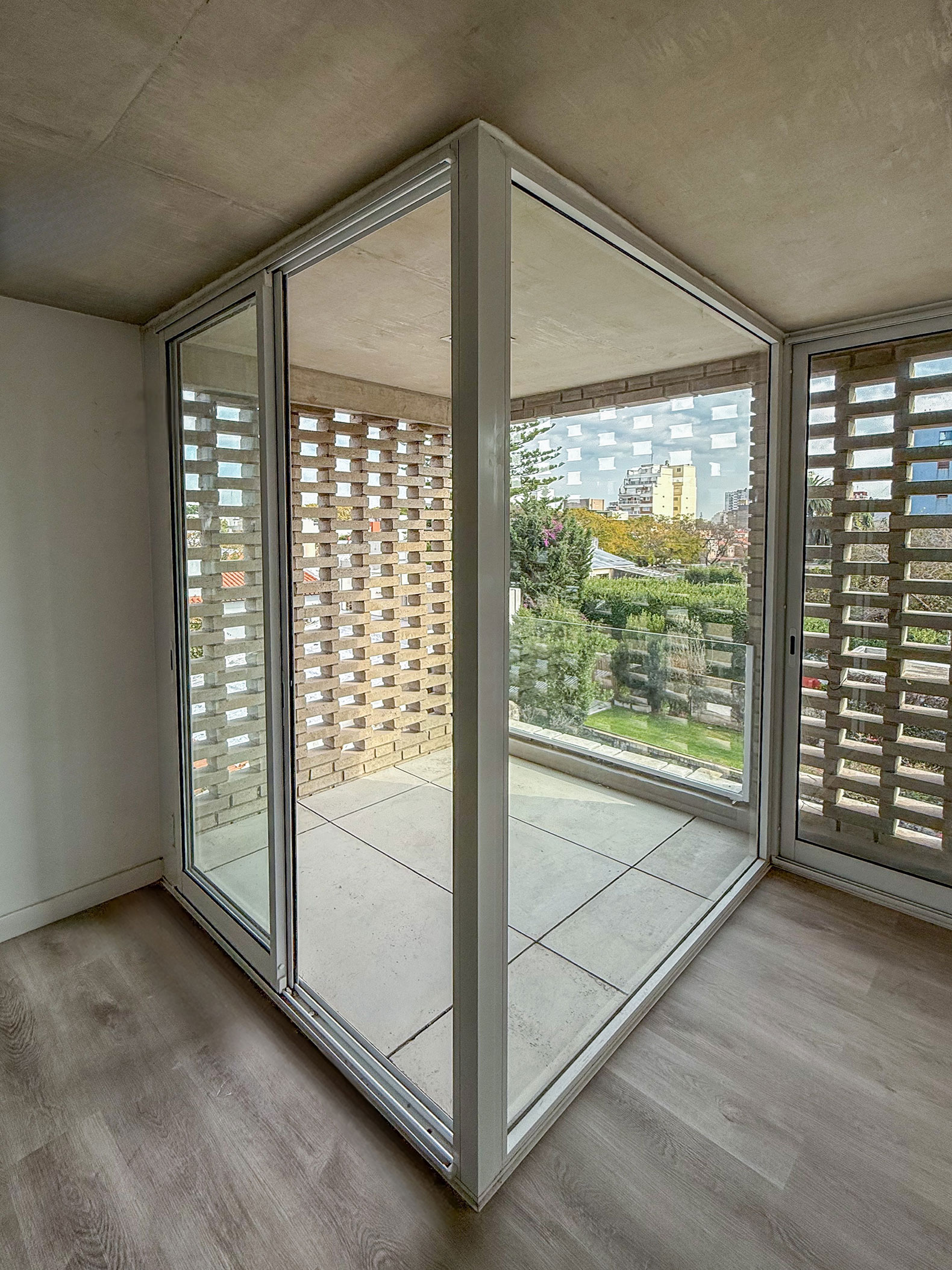 Su configuración, propone dos volúmenes, articulados por patios, que conforman una volumetría permeable, a partir de una piel sensible, materializada con ladrillo, que permite gradientes de iluminación y privacidad.