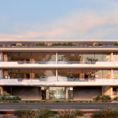 El edificio cuenta con ocho unidades residenciales en total, incluidos dos apartamentos dúplex en los extremos este y oeste. Impresionantes jardines privados en la azotea coronan la cubierta y cada apartamento tiene ventilación cruzada y doble visión, con vistas a la playa y a los exuberantes jardines del sur. Ubicado en el corazón del edificio, el patio con paredes de vidrio se cruza con los apartamentos centrales, aportando luz natural y vegetación directamente a sus espacios habitables. Los muros del patio están hechos de vidrio fundido texturizado que filtra la luz natural hacia los espacios habitables y al mismo tiempo mantiene la privacidad de los residentes.