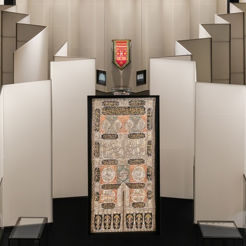 La escenografía de AlMuqtani está diseñada para dar la misma importancia a las dos colecciones que se muestran en esta sección. Un diseño en forma de pajarita divide la galería en dos triángulos de igual tamaño, uno para cada colección. Los triángulos están definidos por paredes plisadas simétricas que ascienden desde el nivel de los ojos hasta la altura total de la sala. Cada pliegue alberga una vitrina, formando un frente de exhibición sin costuras que solo se revela cuando los visitantes circulan por la galería. El centro de la galería está ocupado por los aspectos más destacados y los tesoros de la exposición.