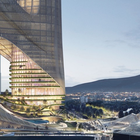 La torre se conectará directamente con su parque y plazas adyacentes, que se transformarán en un paisaje de terrazas que se extiende hacia arriba dentro de sus dos torres, el proyecto invita al público a adentrarse en el corazón del edificio donde las atracciones culturales y de ocio se celebrarán en amplios puentes que unen las torres mientras se ofrecen vistas panorámicas de la ciudad.