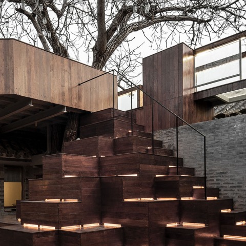 The intervention is on a traditional Chinese hutong (housing) built with grey brick walls in Dongcheng District in the city of Beijing. The goal is to turn it into a hotel, combining private areas and areas for activities open to the neighboring community.