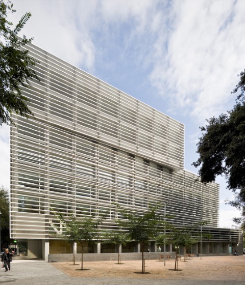 The interior finishings of the walls combine reflective concrete, which creates a stark interior atmosphere, with areas covered by dark woods. This material adornates an area, indicating the uniqueness of the enclosed space (offices, meeting rooms, etc.). The furniture takes in this headquarter a vital role in the definition of the spaces, whose properties and function are defined by the type of furniture used and its arrangements.