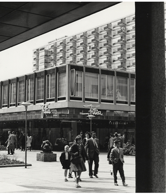 Willem Dudok's De Nederlanden van 1845 building was a direct consequence of the effects of WWII on Rotterdam. The former headquarters of the insurance company, of the influential architect H.P. Berlage, had been among those affected by the bombing and, although it remained standing, the serious damage to its structure and the loss of almost all its enclosures led the company to make the decision to demolish it in 1960.