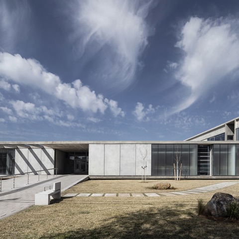 The uniqueness of the design lies in the coherence of a precise geometric module that is strictly enforced throughout; Concrete (on-site casts & precast units), textured glass, and metal flow seamlessly from exterior to interior surfaces. Cutting-edge sealing techniques were used to protect the building from the rain while maintaining its flat roof silhouette and tight proportions.