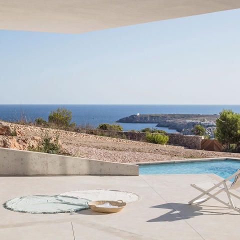 The house is made up of six bedrooms, a living room, a dining room, a kitchen, a garage and other auxiliary rooms. From the front of the house, you can enjoy impressive views of the cliffs of Menorca, the latter is part of an extension of the kitchen, dining room and living room, which will be where most social gatherings are held.