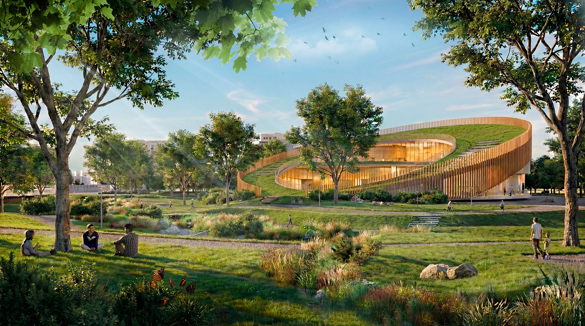 A connection to nature is fundamental, incorporating a combination of blue infrastructure (water networks) and green infrastructure (natural spaces). A key component of this project is the 15-hectare Forest Park, which will connect to the area via linear parks and the renaturalized Rákos stream, transformed into a pleasant, meandering waterway with a network of terraces, paths, and accessible rest areas.