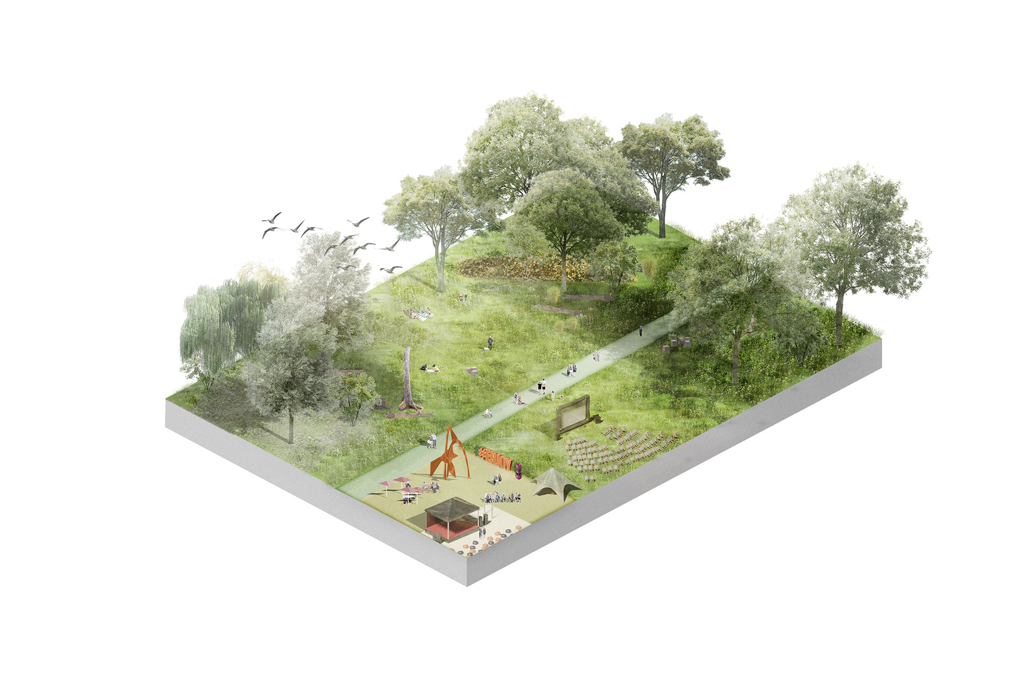 Rákosrendező Masterplan by Coldefy + CITYFÖRSTER + sporaarchitects + TREIBHAUS.LAND + Marko&Placemakers. Rendering by Zoa.