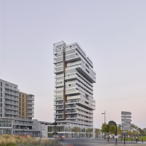 Along the Loire River, just a few steps from the center of Nantes Malakoff district arises. Surrounded by roads and train and tram this residential tower is located in Pré Gauchet, a semi-desert no man's land space to complete the insularity of Malakoff.