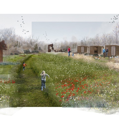 - The central meadow (lineal guarrigue gardens, places for social happenings, clearings of natural regeneration, outdoor activities, marketplaces , exhibition of sculptures and industrial installations as “objects trouvés¨)