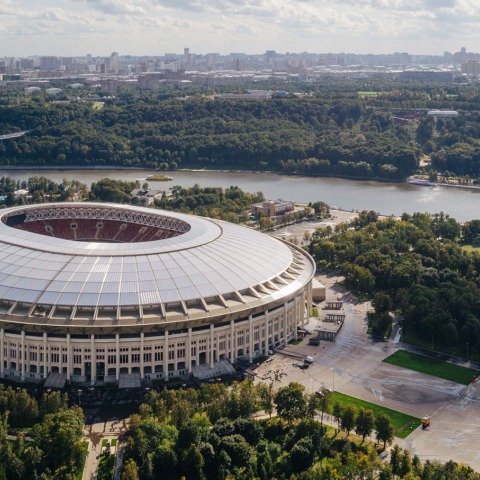 Designing of the stadium began in January 1955, construction - in April of the same year. The architects of the stadium were AVVlasov, IERozhkin, NNUllas, AFHryakov. The stadium is located on the planning axis of the master plan of Moscow in the 1930s, connecting the Kremlin, the Cathedral of Christ the Savior and the Moscow State University. The grand opening took place on July 31, 1956. In 1980, the stadium became the main Olympic arena. Since 2013 it is closed for reconstruction. In 2018, "Luzhniki" will host a number of matches of the World Cup, including the finals.