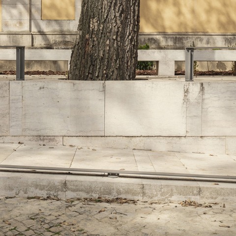 The new intervention takes advantage of the incomplete status of the building, promoting a plateau, built with blocks of lioz stone, the same material used in the monument. The big tipuana tipu trees, that featured the place, were integrated into the project. The trunks of those majestic trees suggest a colonnade that follows the new promenade architectural. A long bench limited the new accessible path, inviting people to a contemplative moment in this romantic garden, plenty of species brought from former Portuguese colonies of Africa and Brazil.